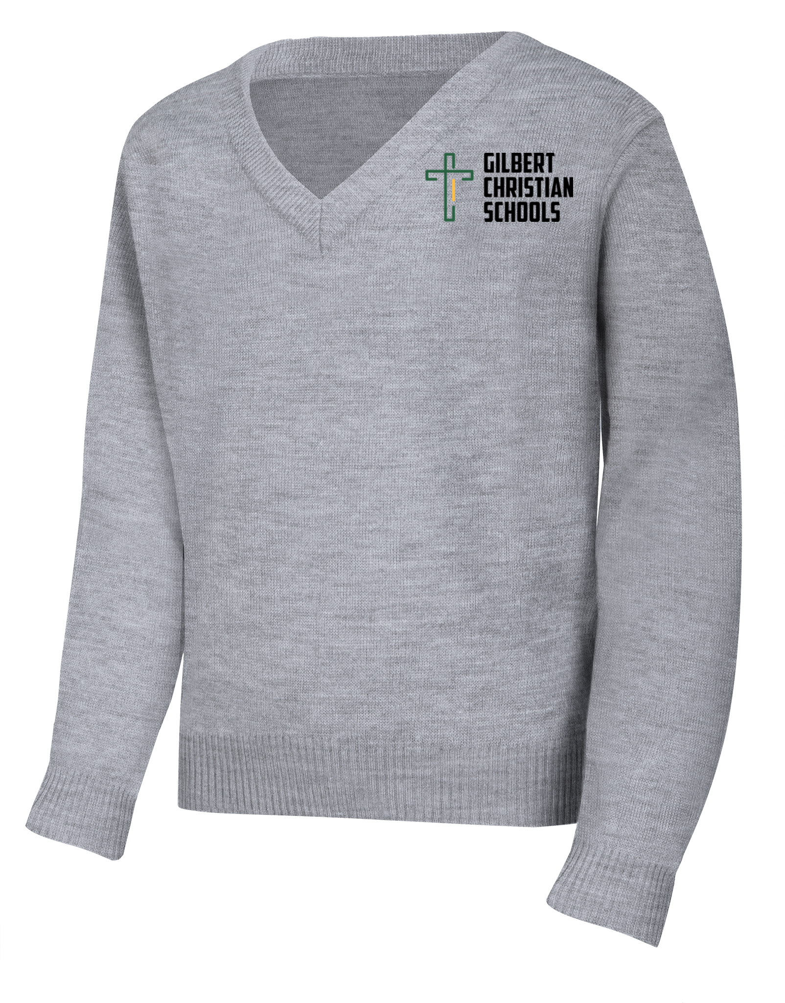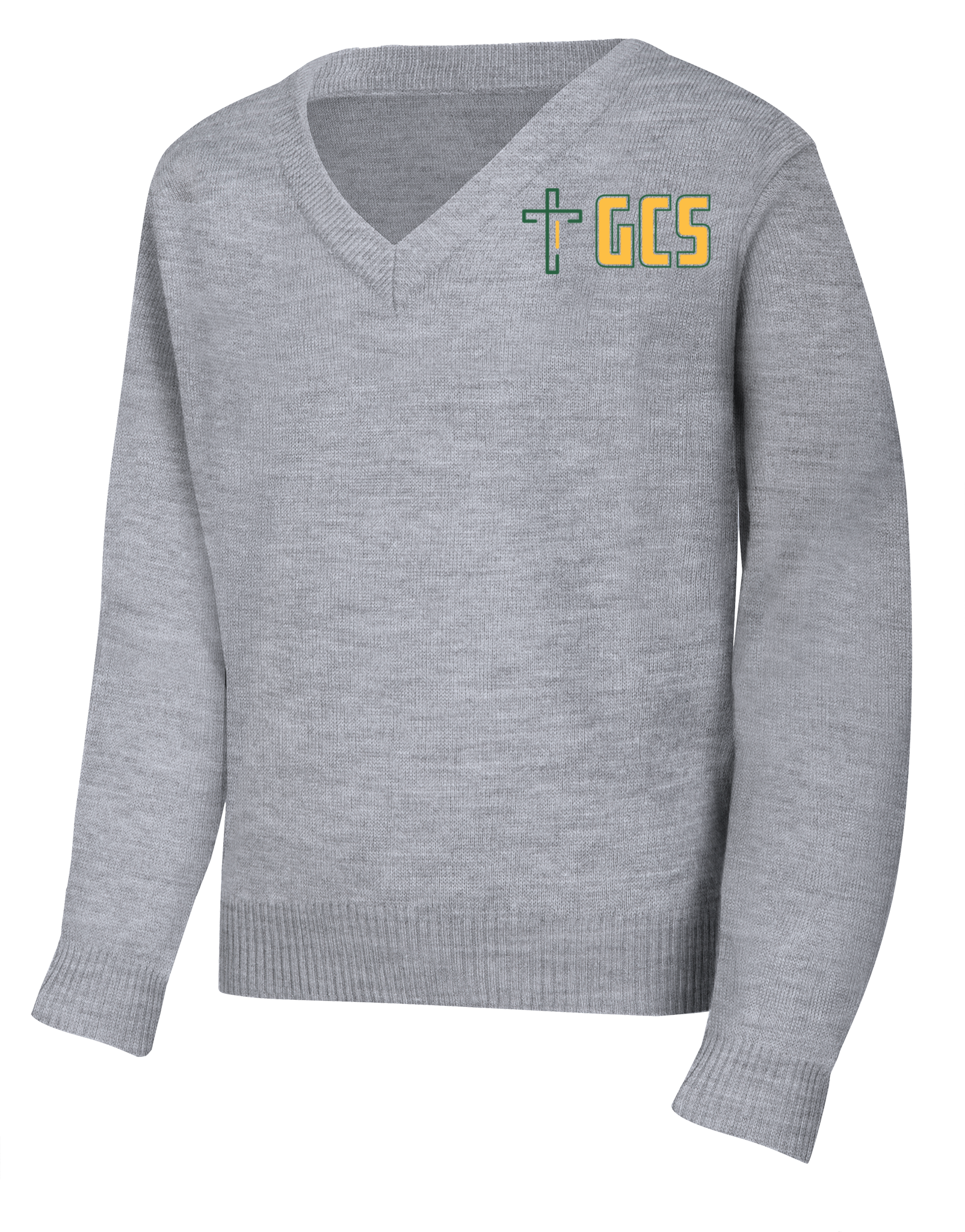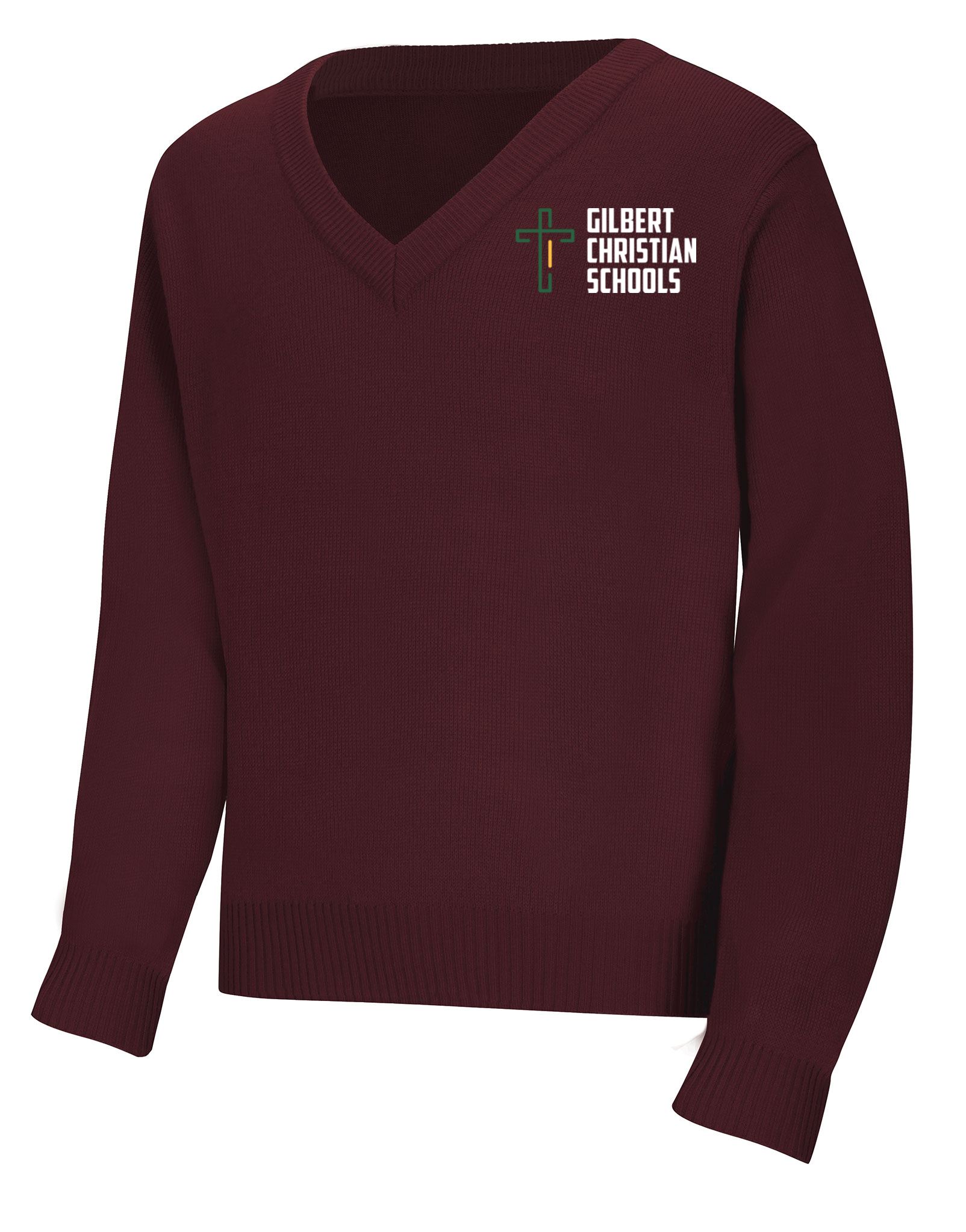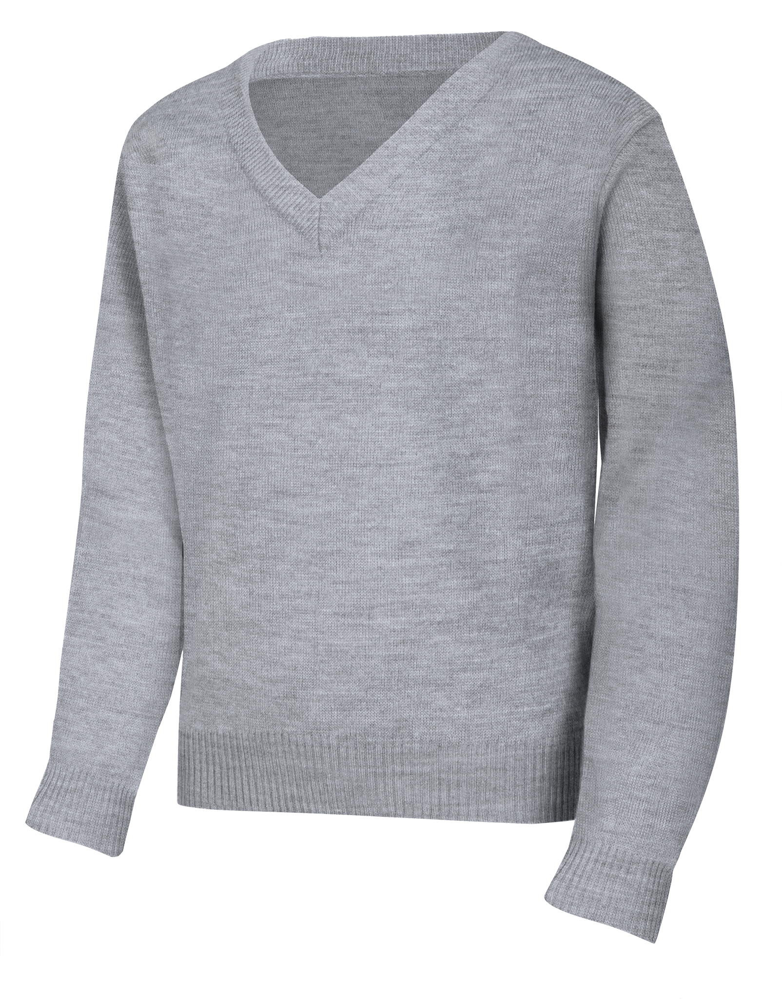 Unisex V-neck pullover sweater with half Milano stitch and turn-back ribbed cuffs, collar and hem. No pill, easy care 100% Acrylic knit.