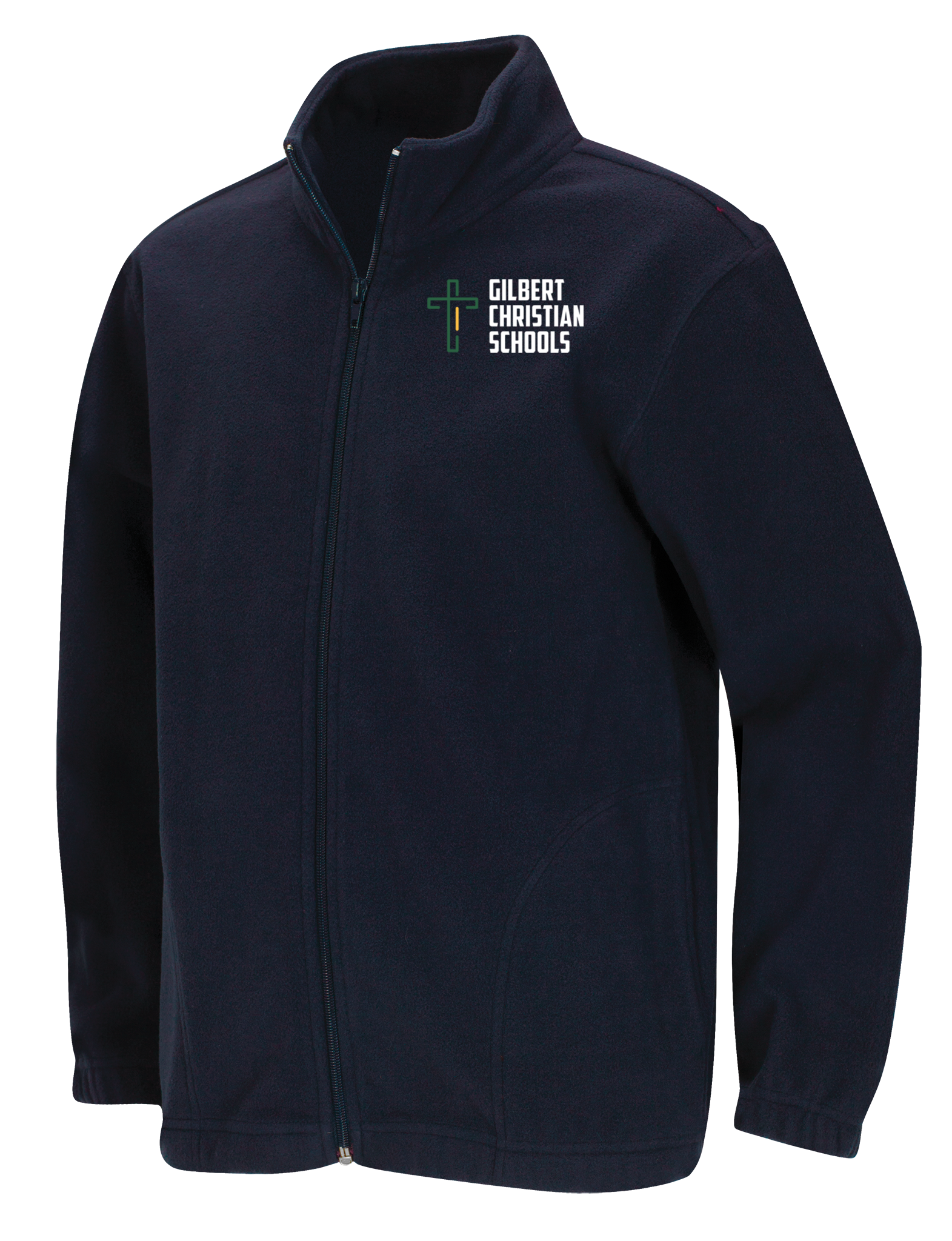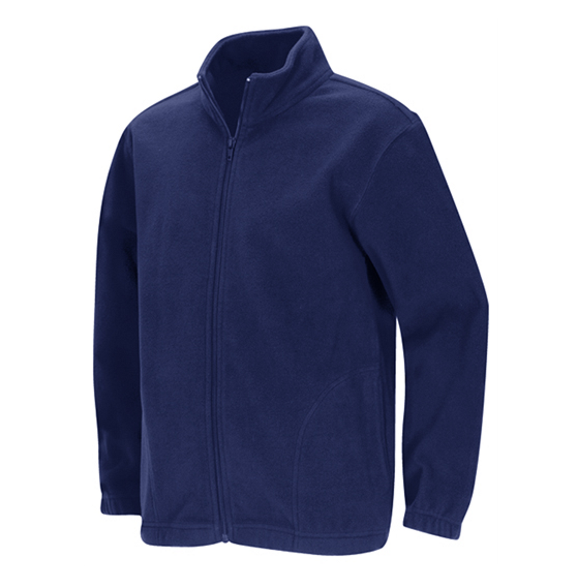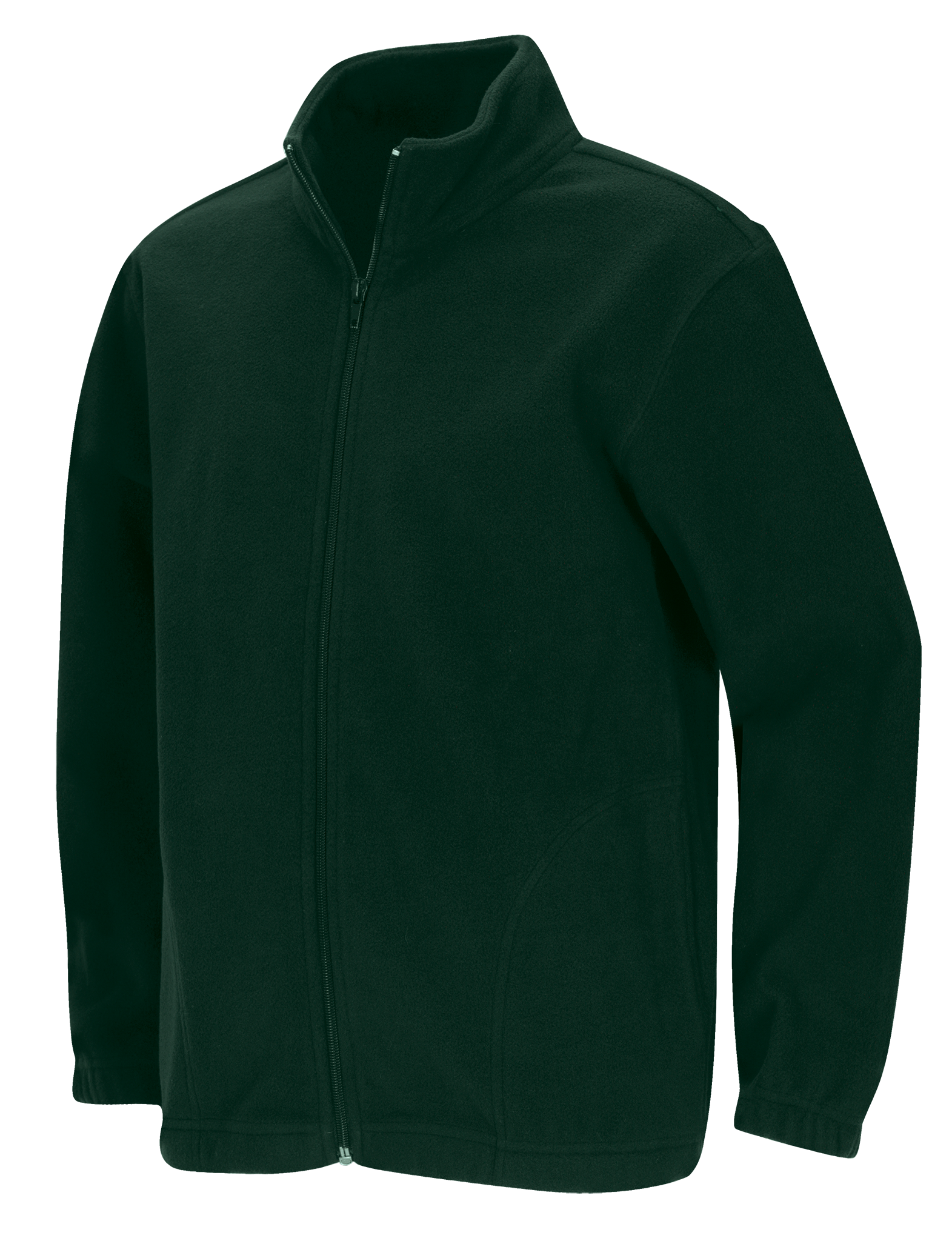 Adult no-pull zip front polar fleece jacket with two front pockets. 100% Polyester.
