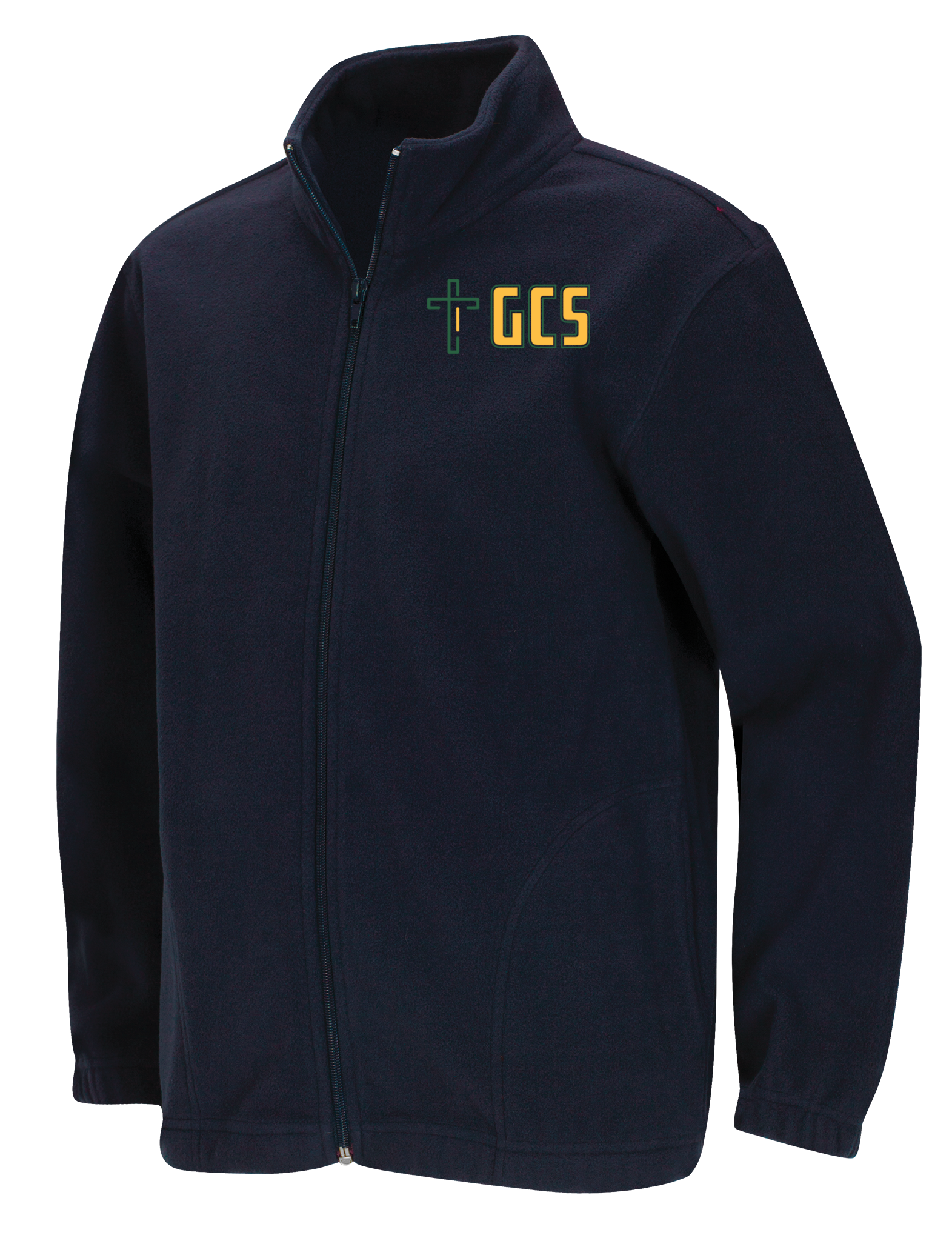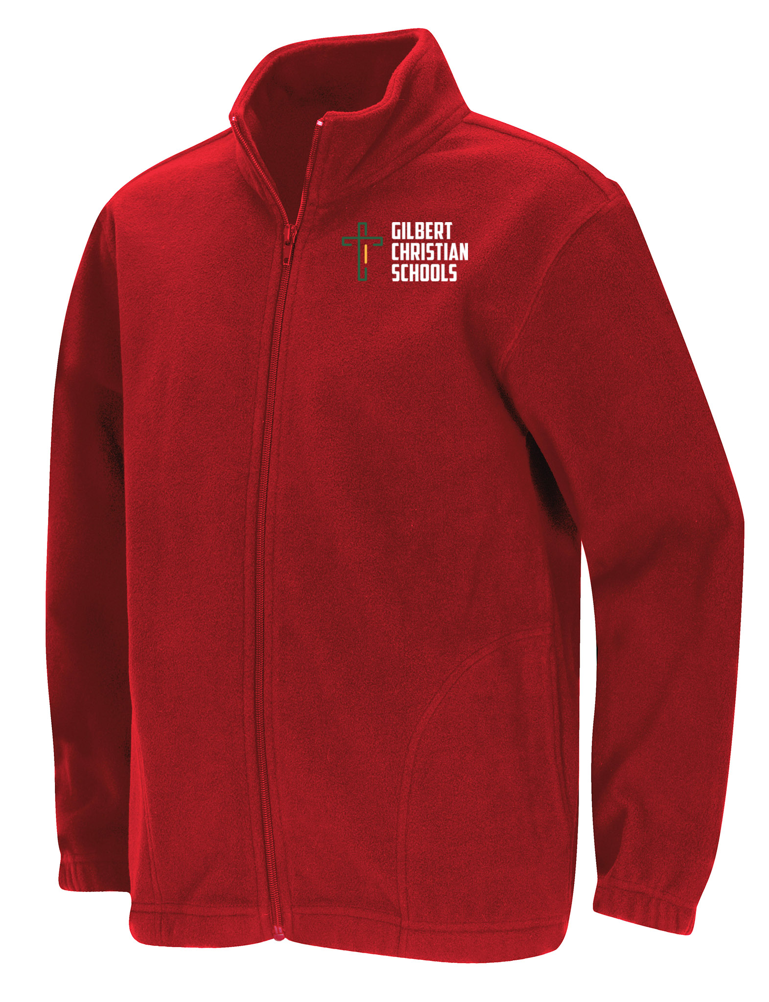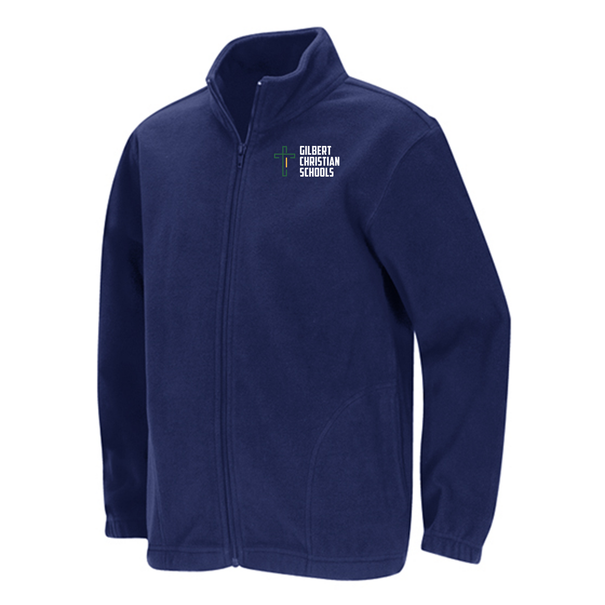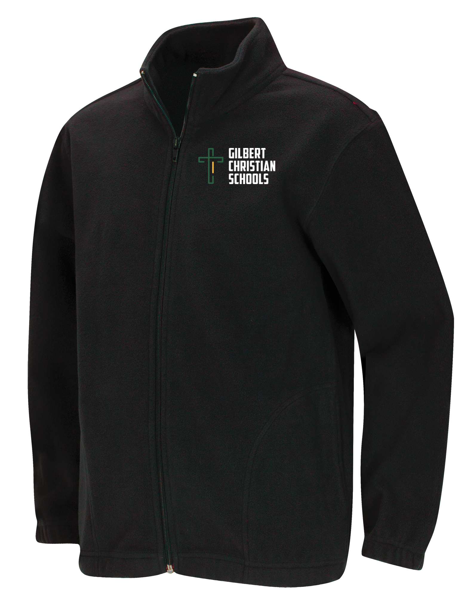Adult no-pull zip front polar fleece jacket with two front pockets. 100% Polyester.