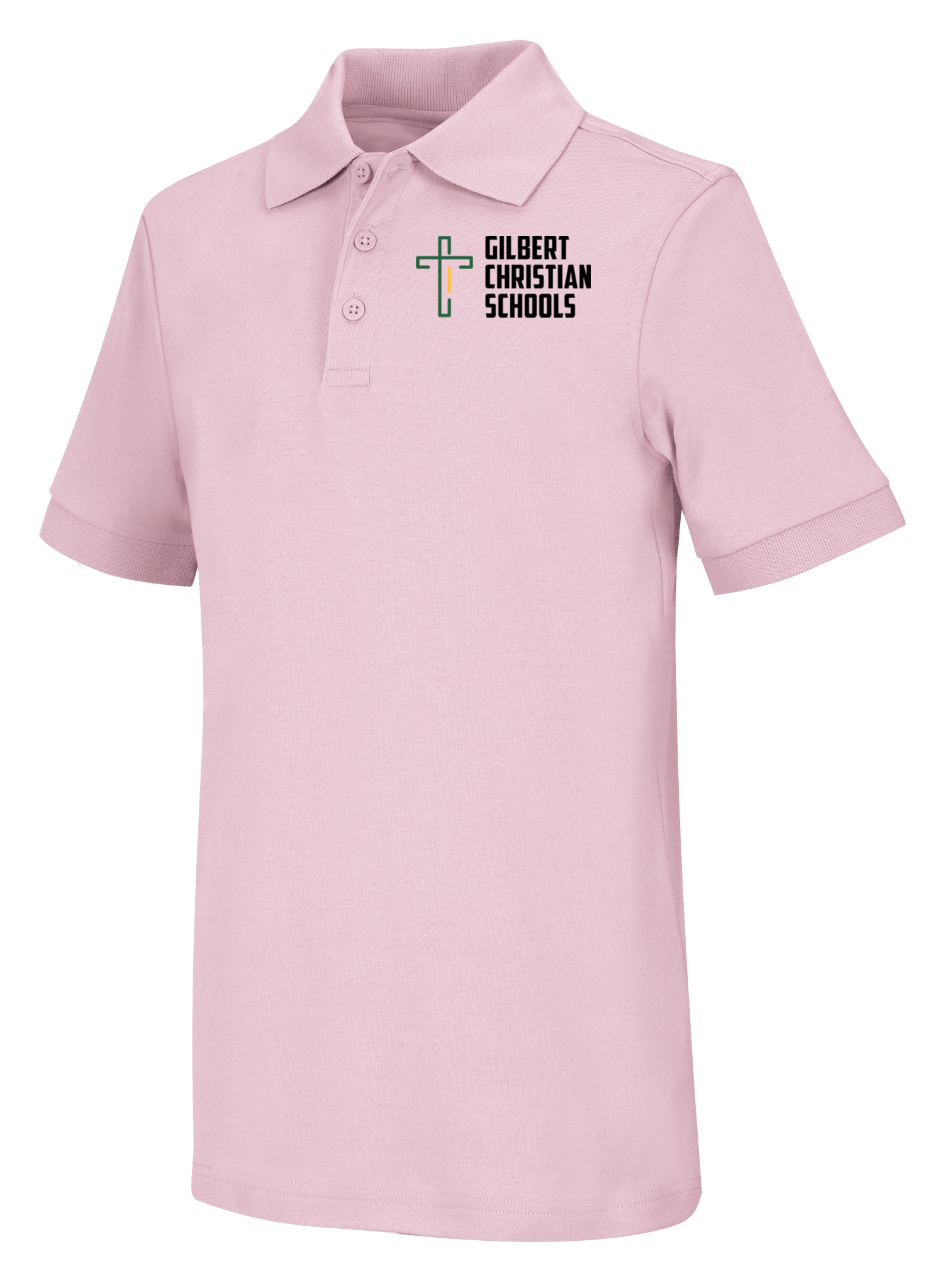 Adult unisex short sleeve unisex polo in a combed cotton, ringspun interlock knit with a 3 button placket and matching ribbed collar and cuffs, reinforced shoulder seams and double-needle hem. Colorfast, easy care 60% Cotton/40% Polyester.