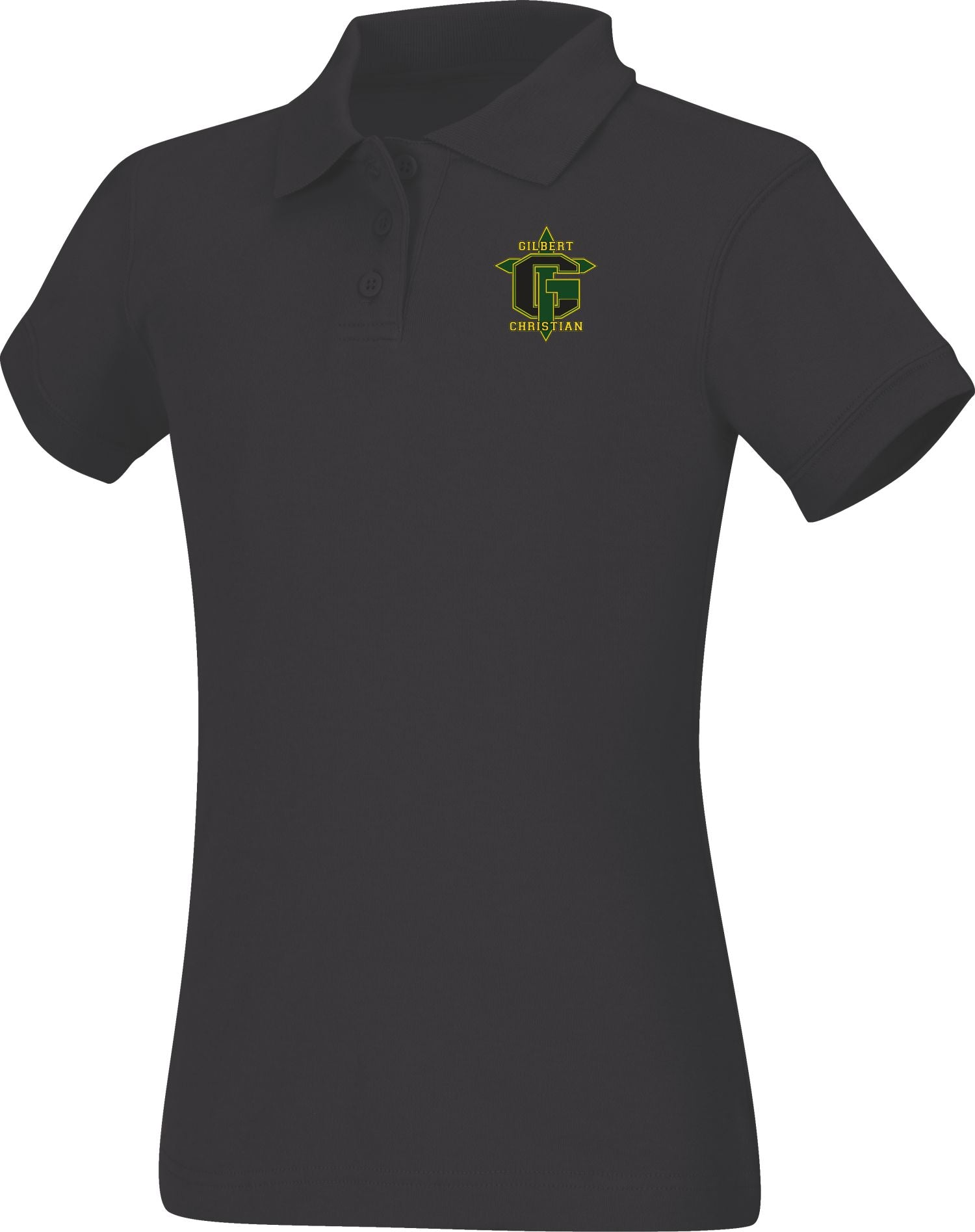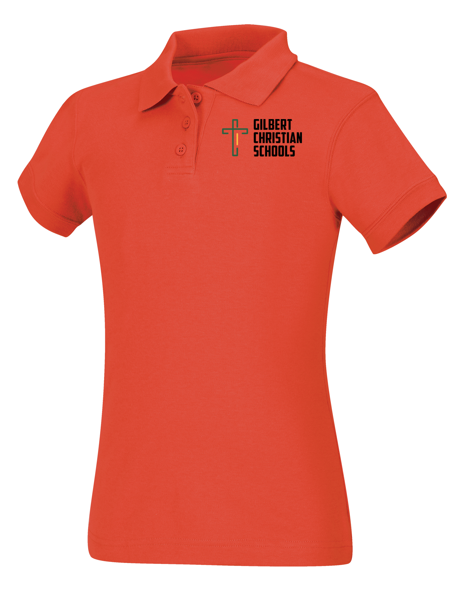 Juniors cap sleeve polo in interlock knit with 3 button placket (right over left) has softly fitted body . 60% cotton / 40% polyester interlock knit. THERE ARE NO EXCHANGES OR RETURNS on DISCOUNTED items.