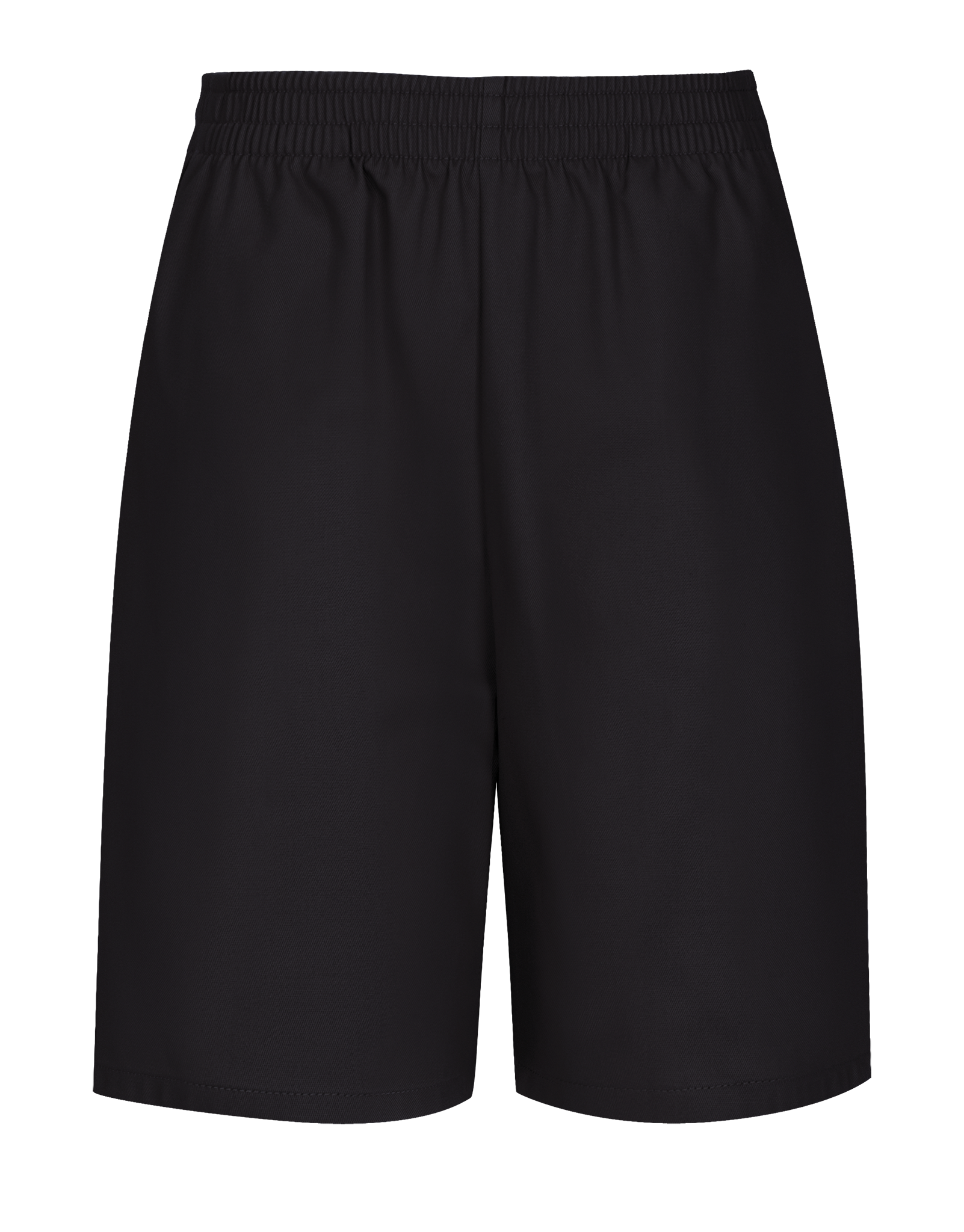 Husky pull-on short has triple-stitched all-elastic waist, side pockets, knee-length. Poly/Cotton twill easy care.
