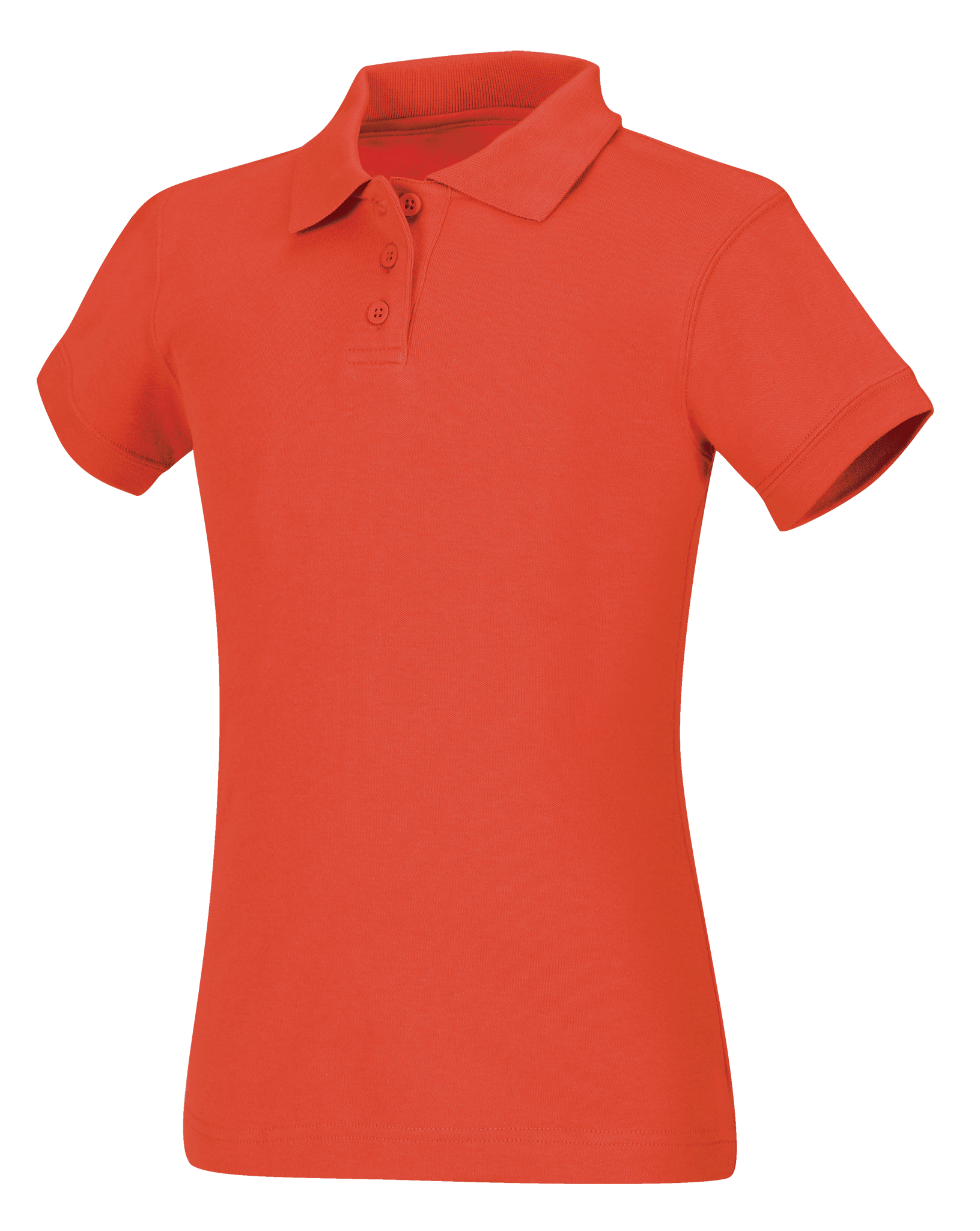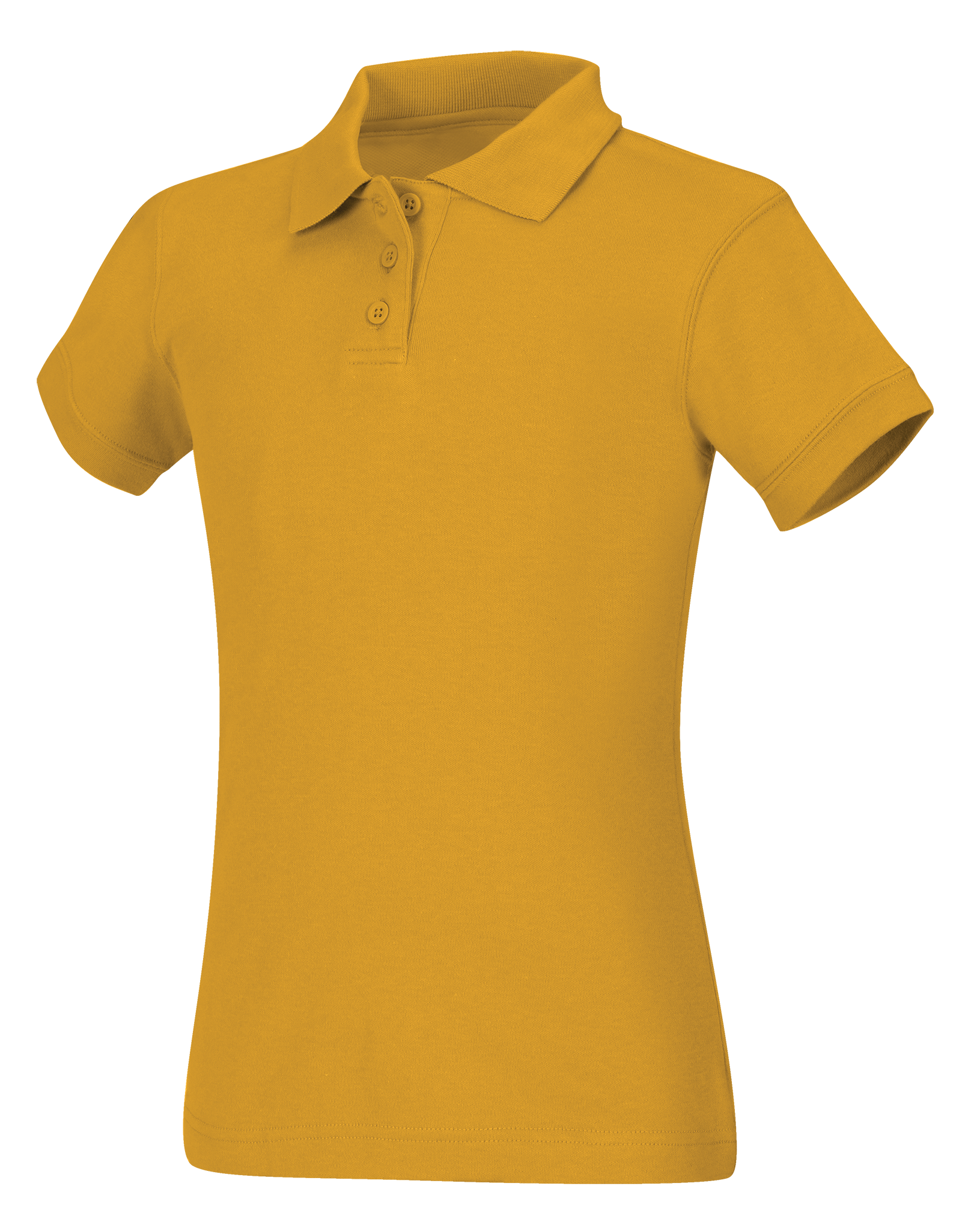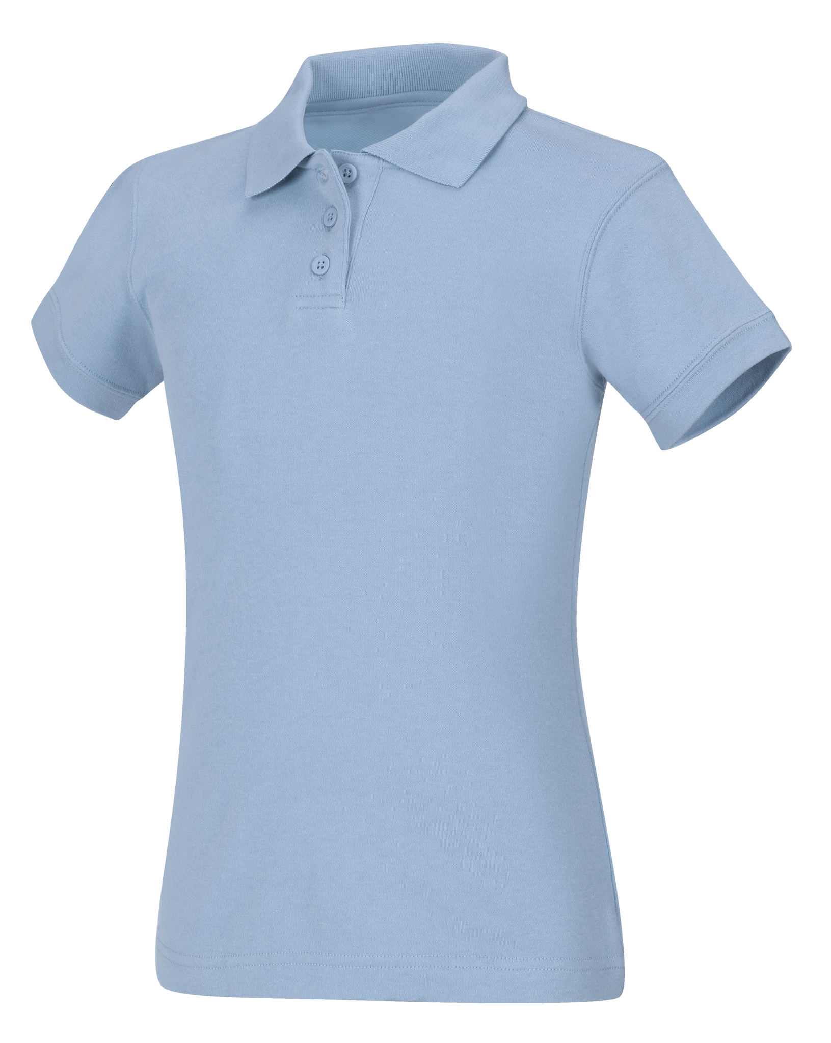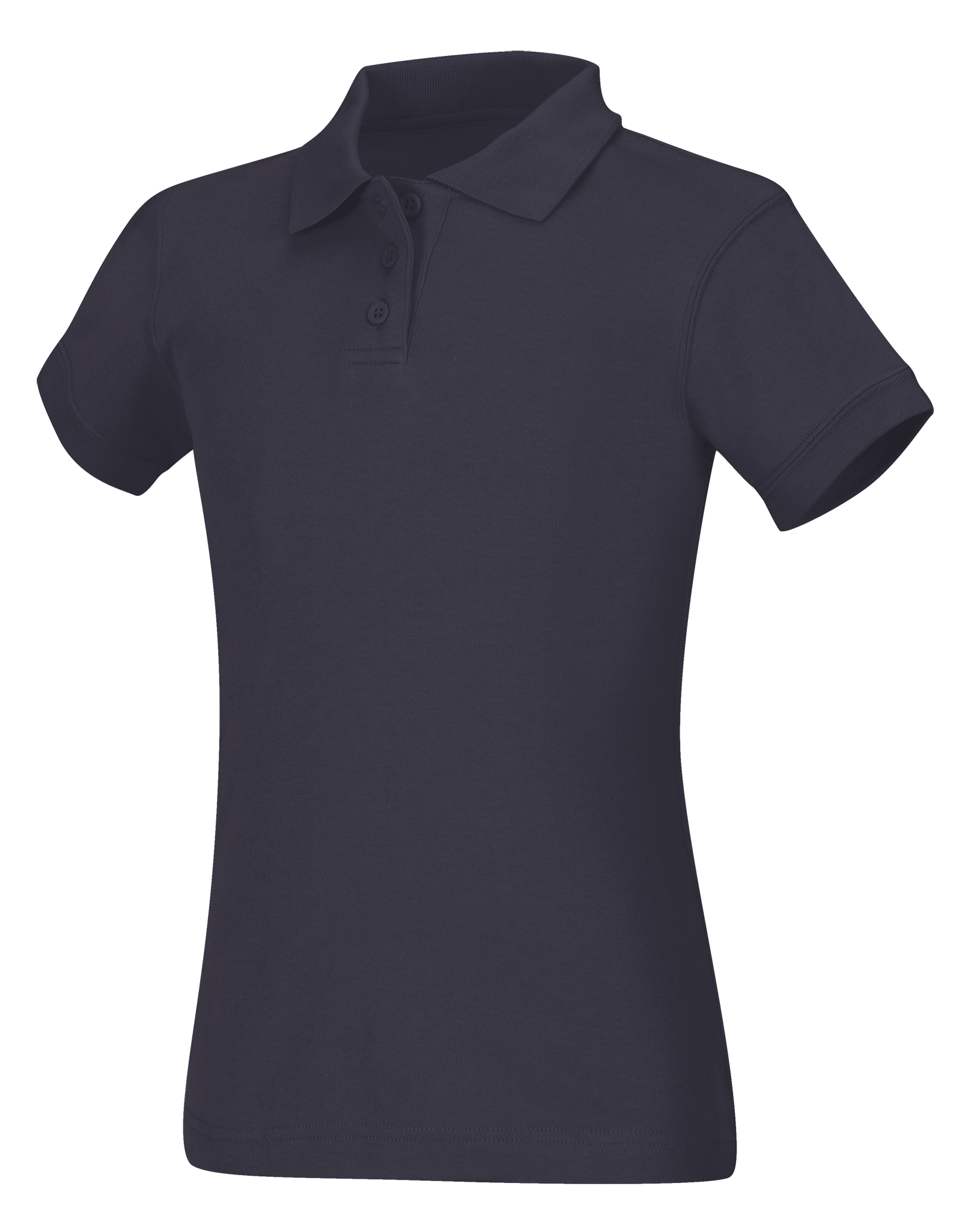 Juniors cap sleeve polo in interlock knit with 3 button placket (right over left) has softly fitted body . 60% cotton / 40% polyester interlock knit. THERE ARE NO EXCHANGES OR RETURNS on DISCOUNTED items.