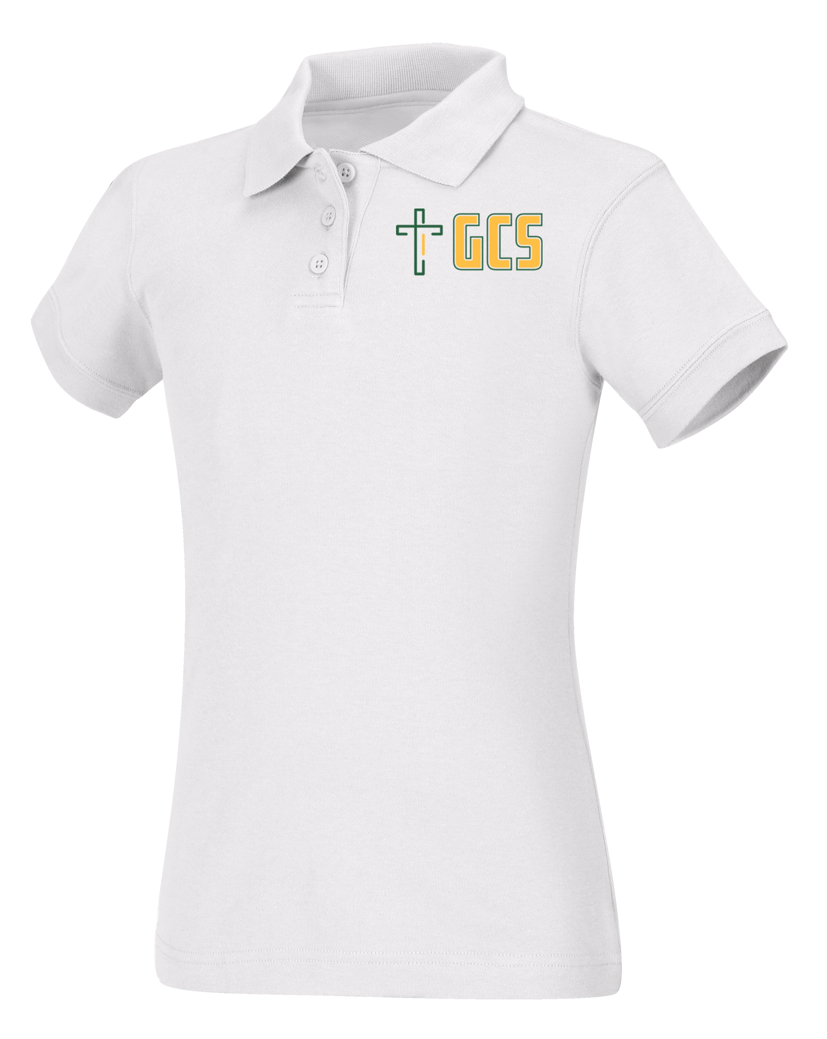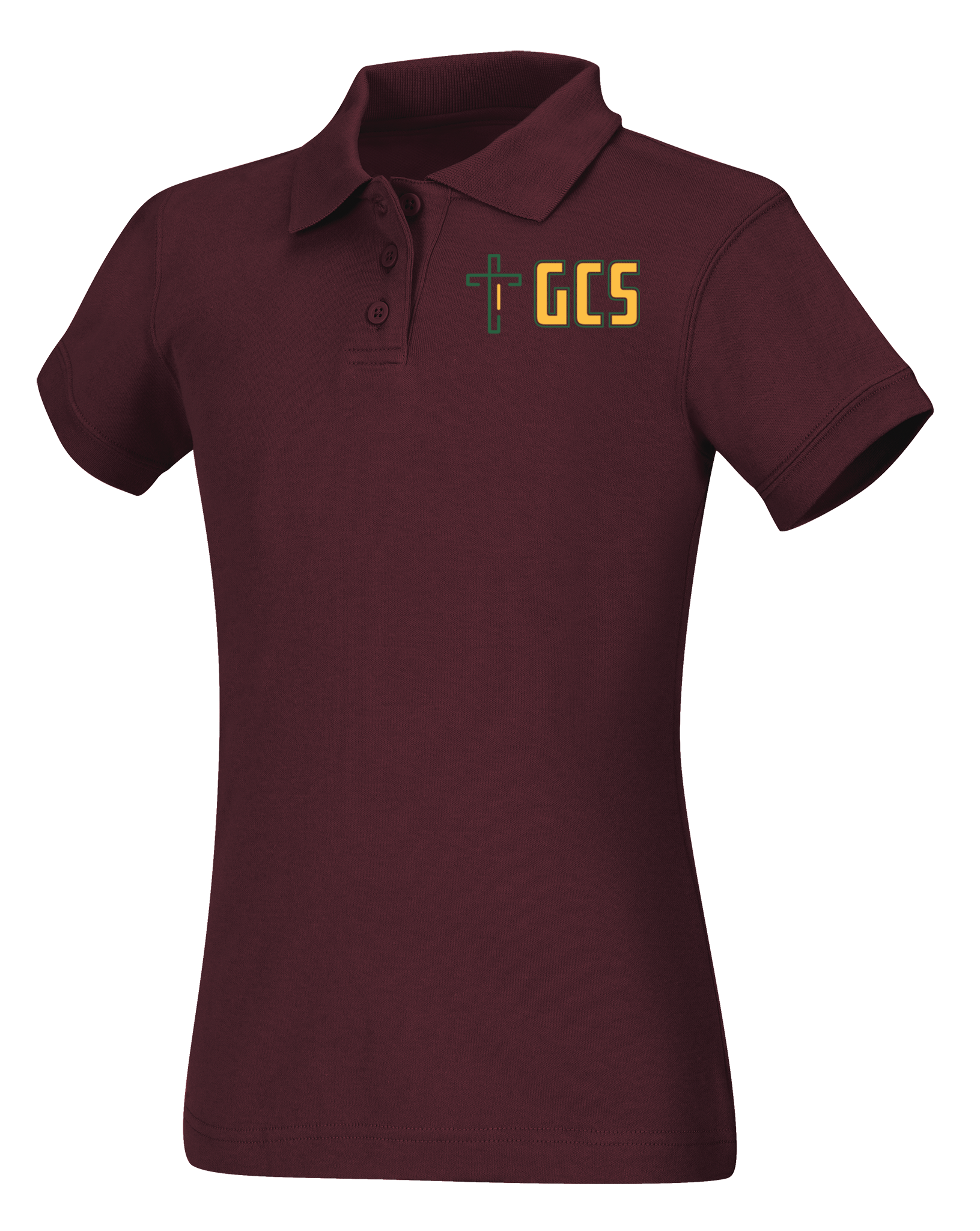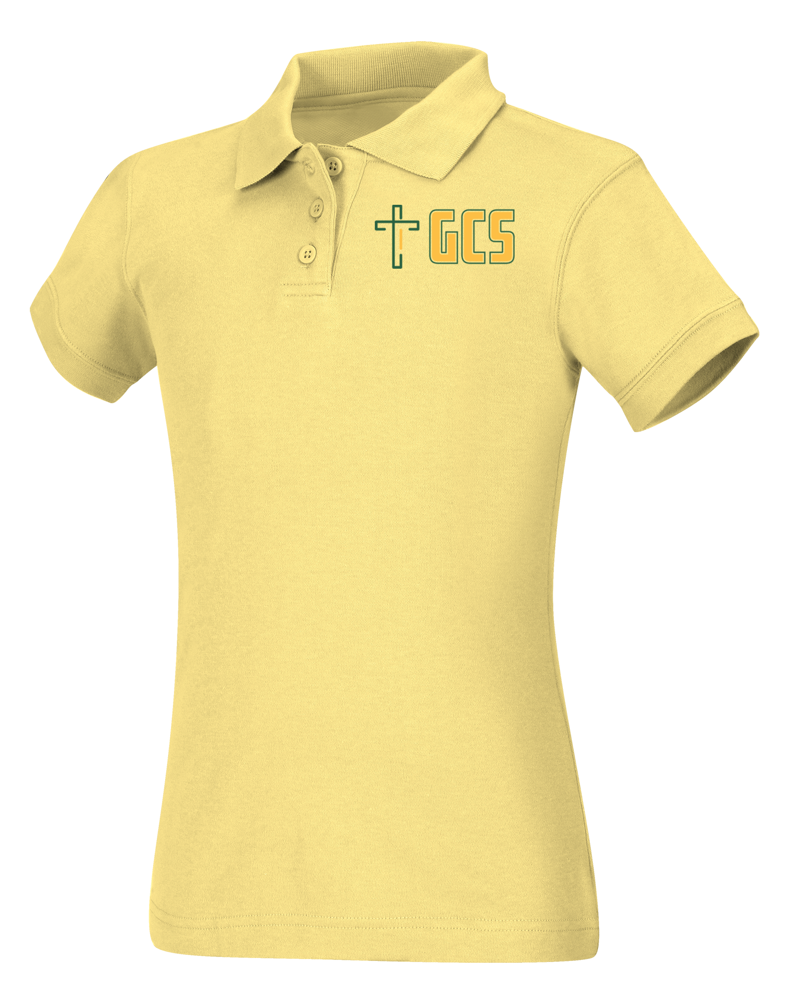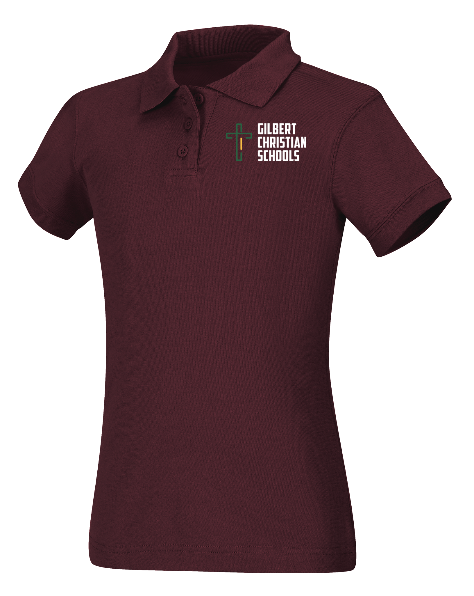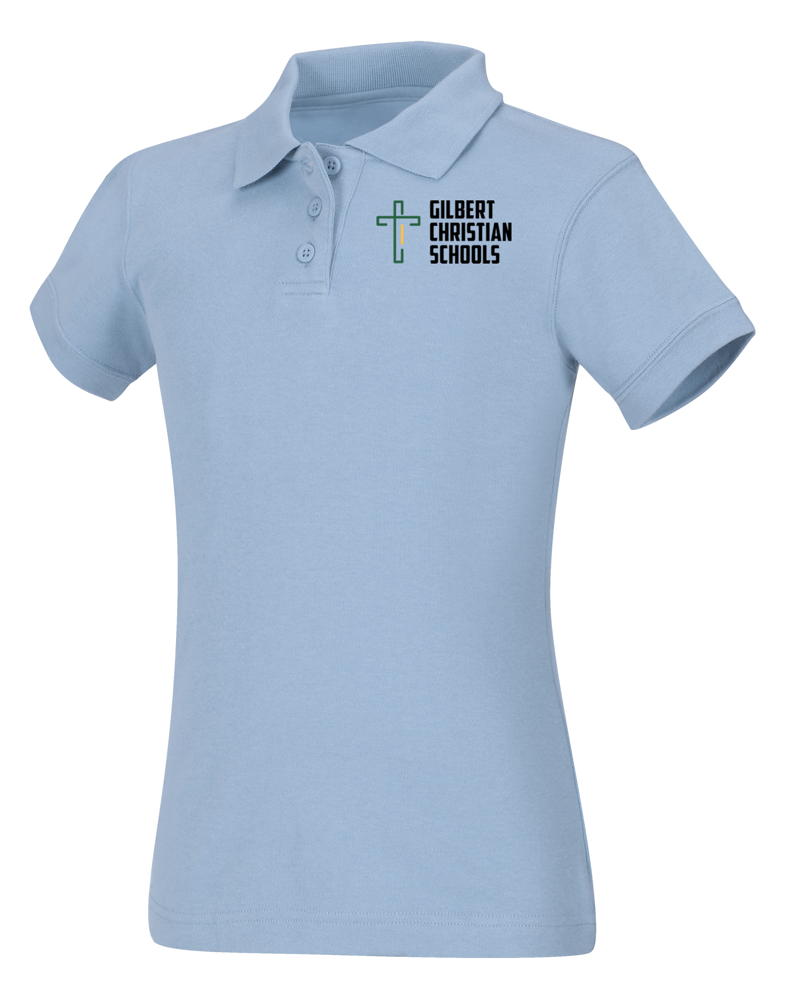 Juniors cap sleeve polo in interlock knit with 3 button placket (right over left) has softly fitted body . 60% cotton / 40% polyester interlock knit. THERE ARE NO EXCHANGES OR RETURNS on DISCOUNTED items.
