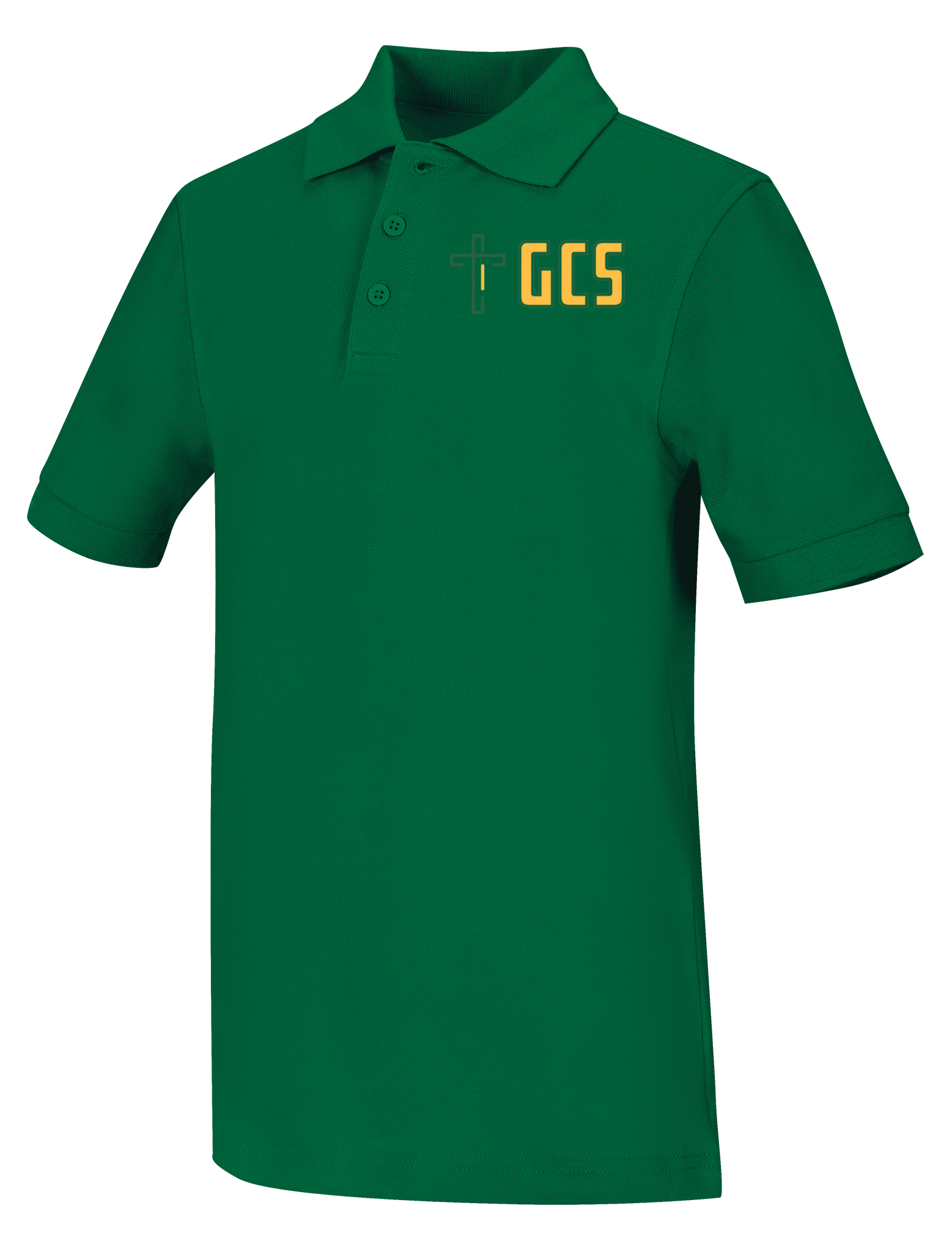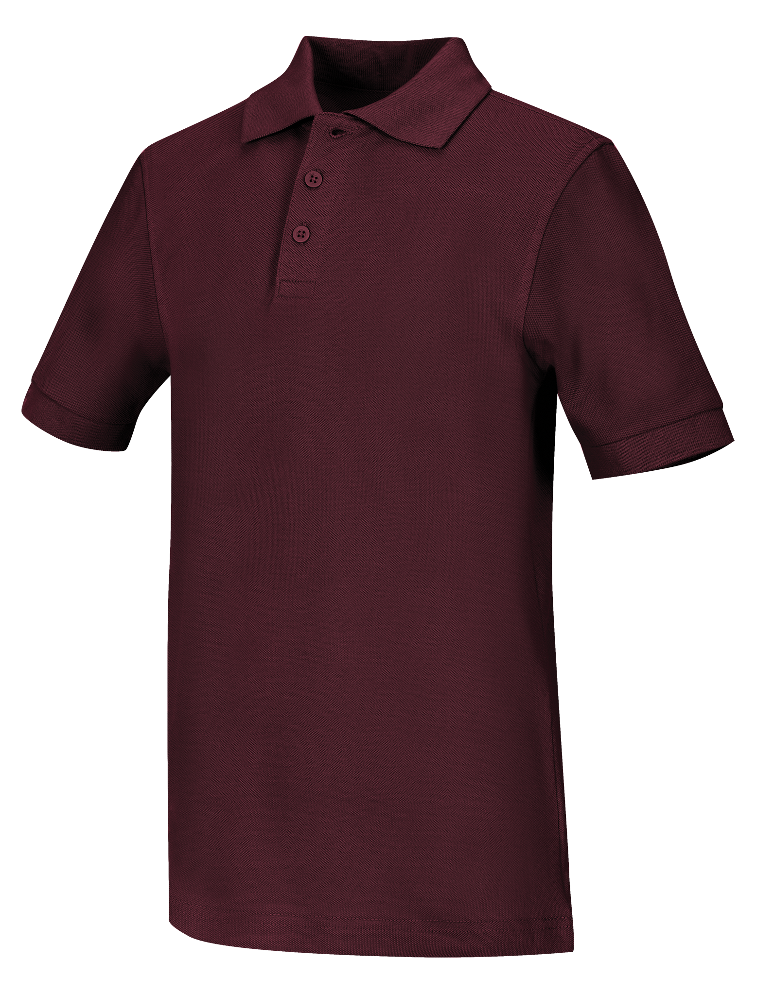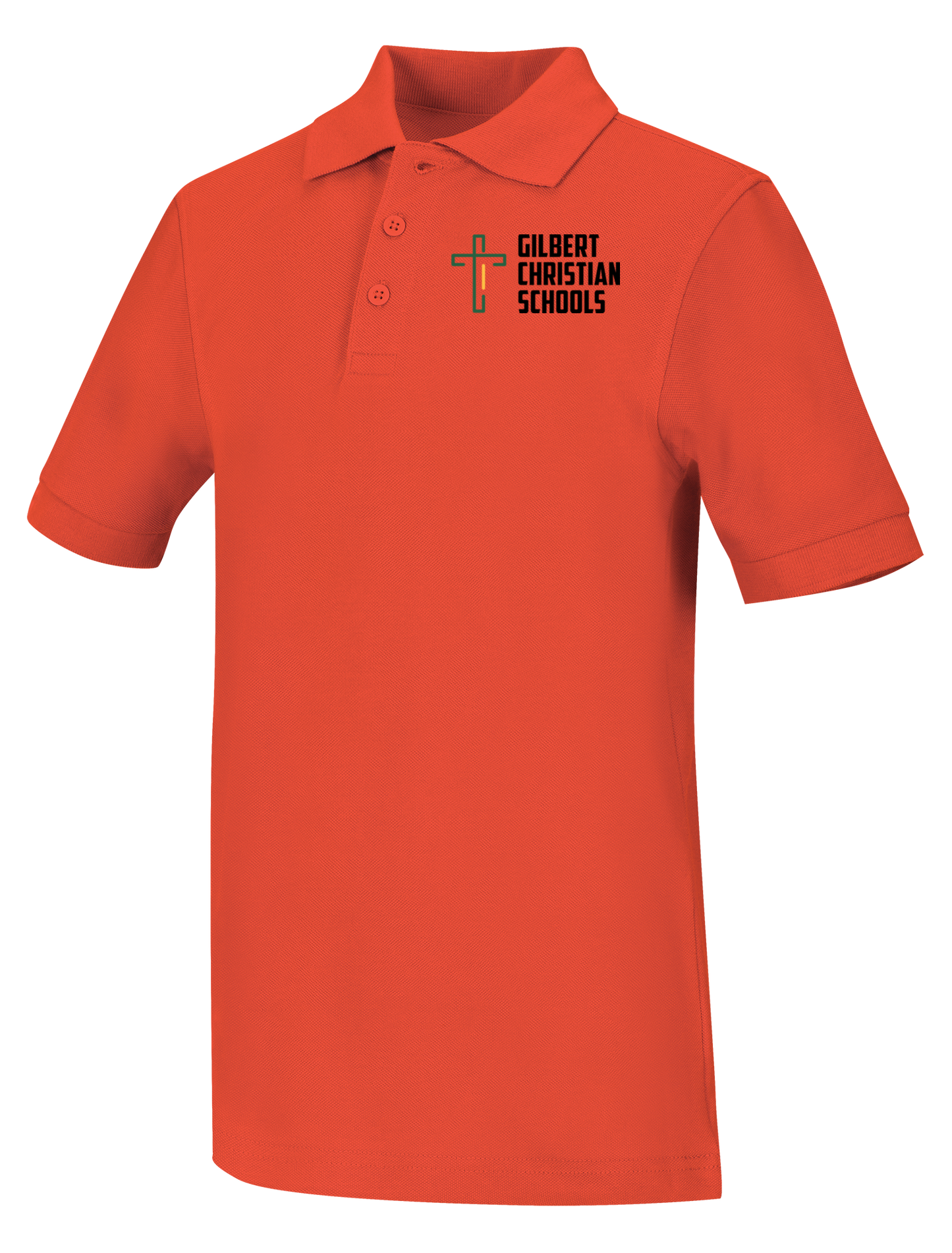Adult unisex combed cotton, ringspun pique knit polo, matching collar and banded sleeve, three-button placket, dyed-to-match buttons, reinforced shoulder seams and double-needle hem. Colorfast, easy care 60% Cotton/40% Polyester.