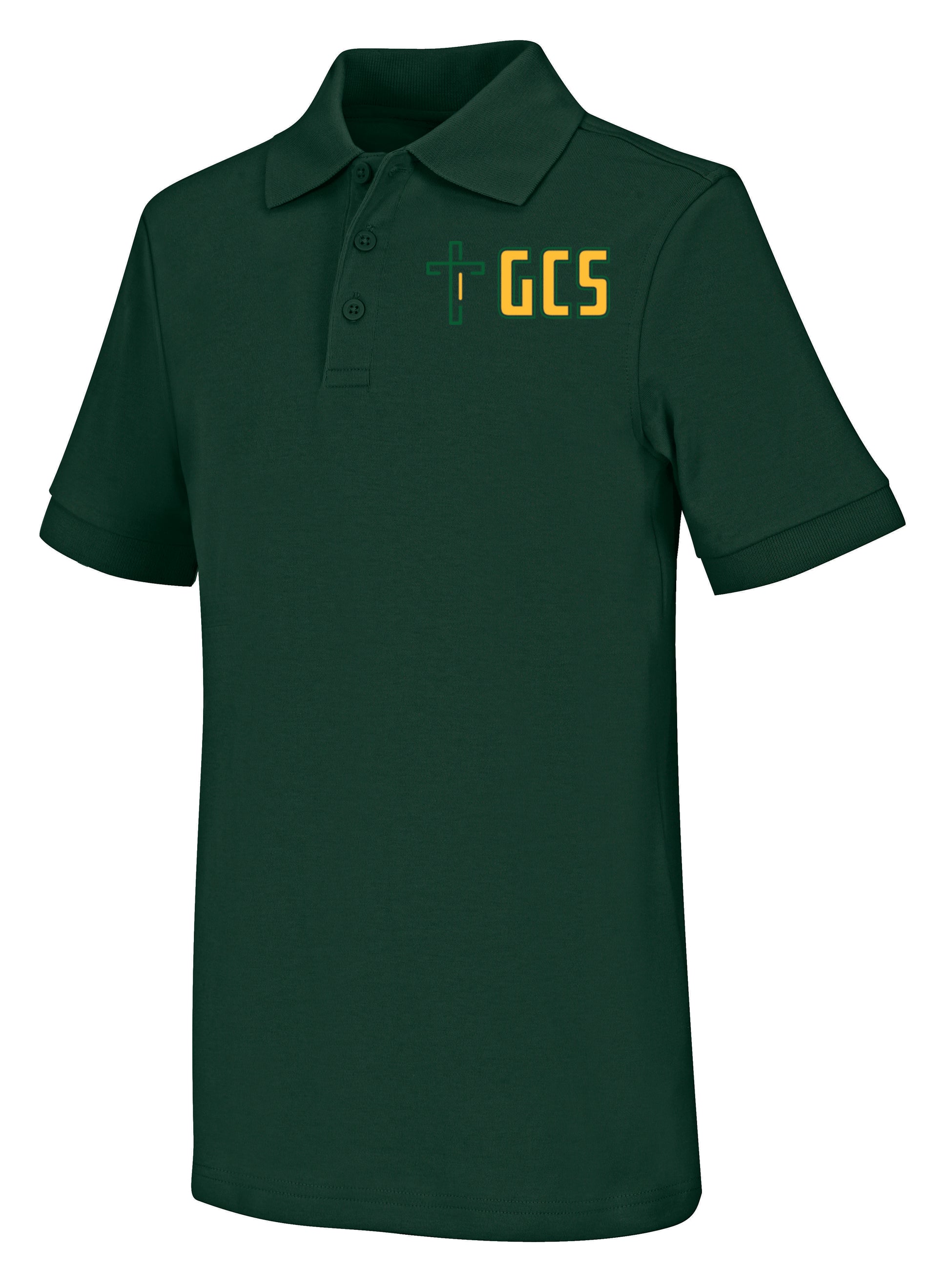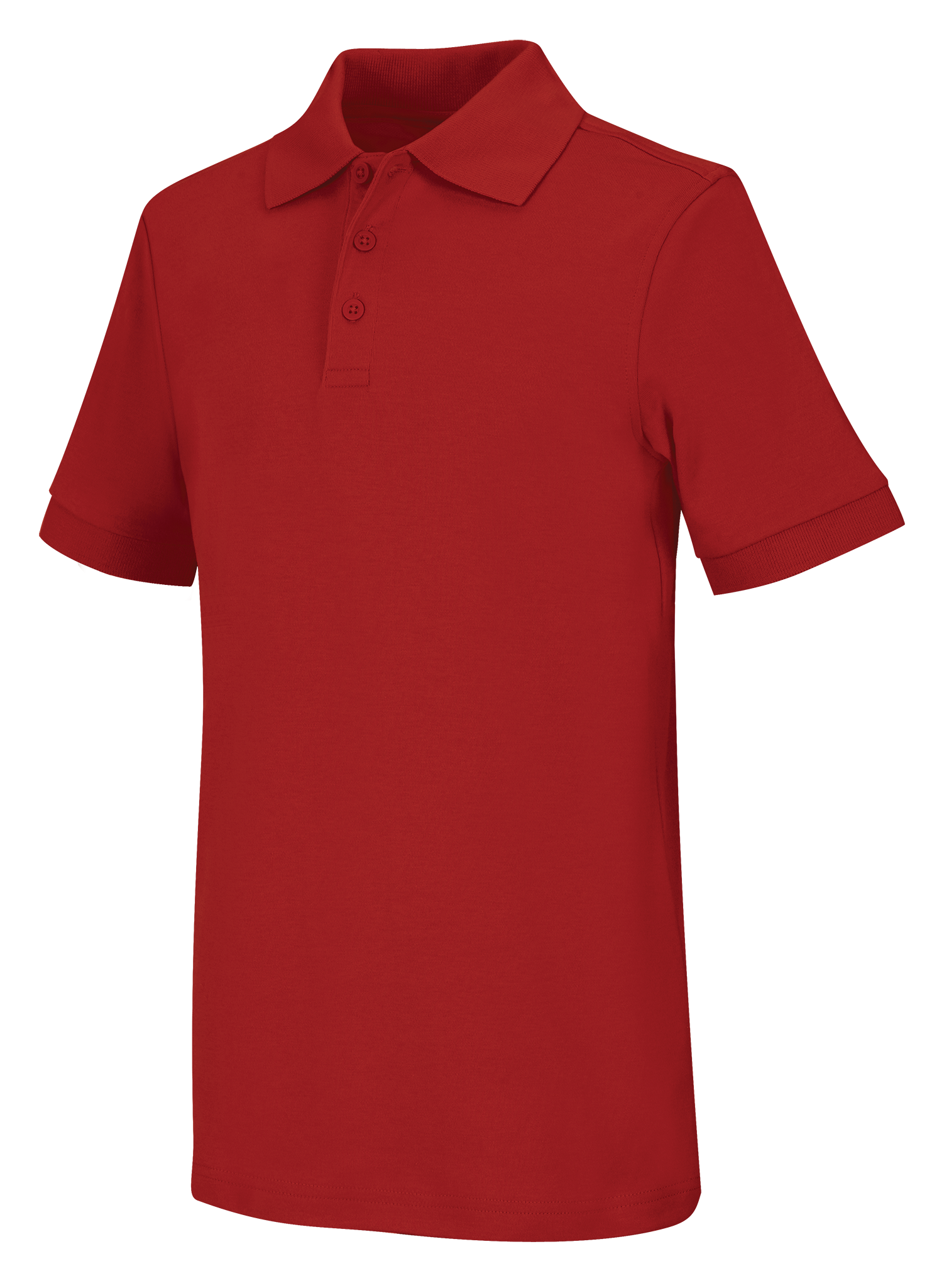 Adult unisex short sleeve unisex polo in a combed cotton, ringspun interlock knit with a 3 button placket and matching ribbed collar and cuffs, reinforced shoulder seams and double-needle hem. Colorfast, easy care 60% Cotton/40% Polyester.