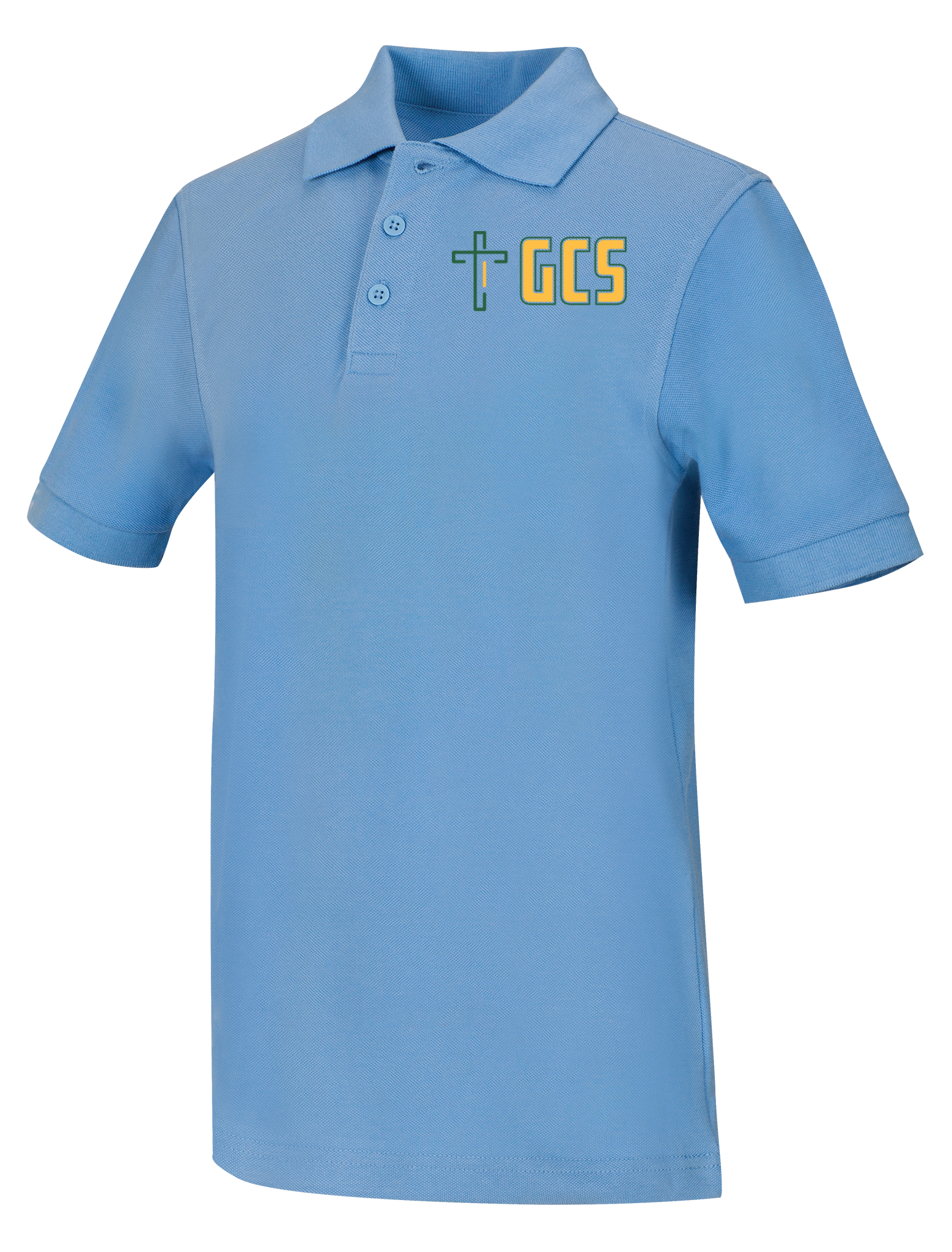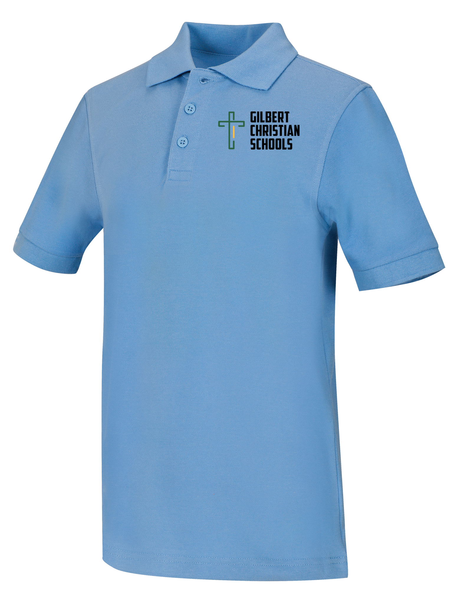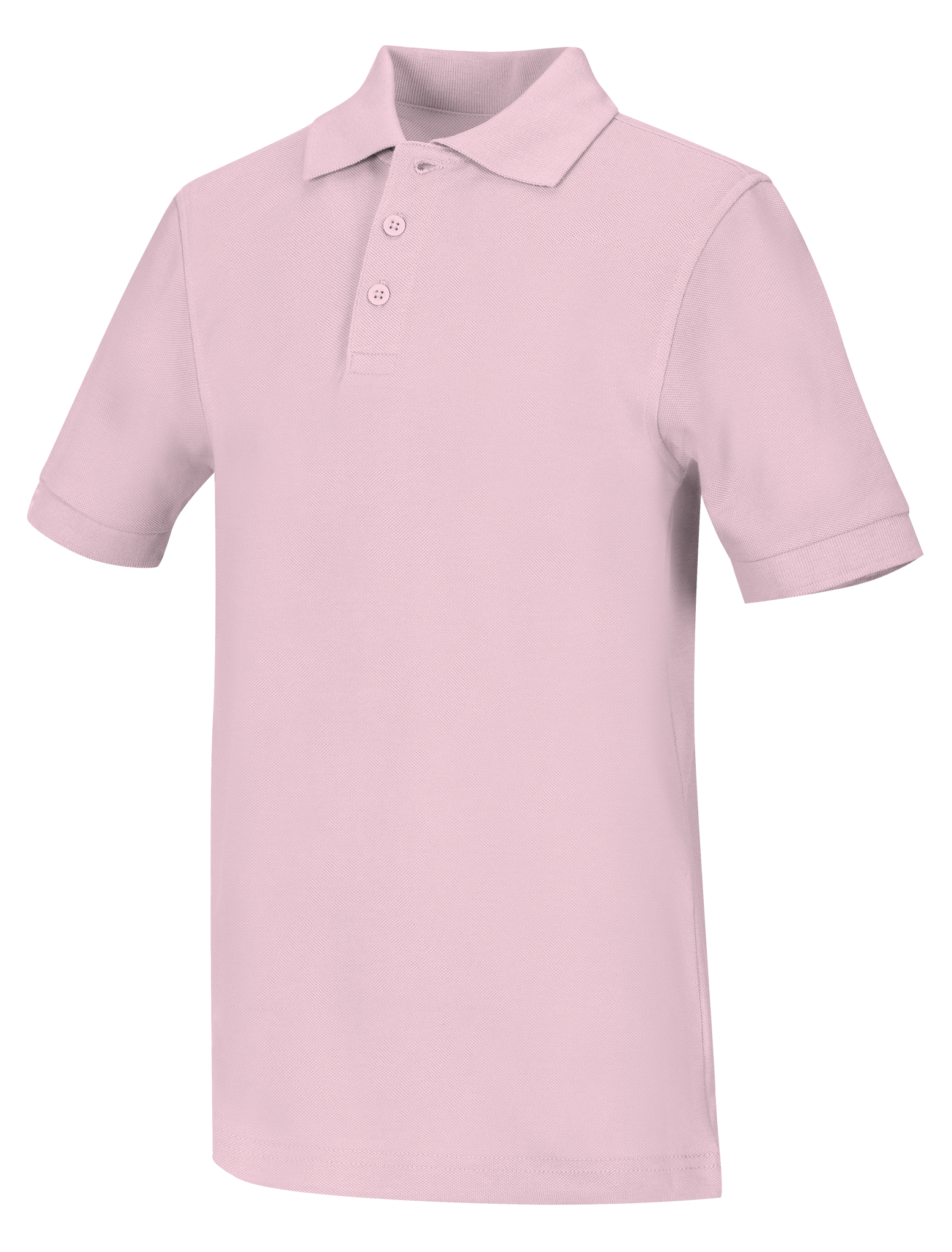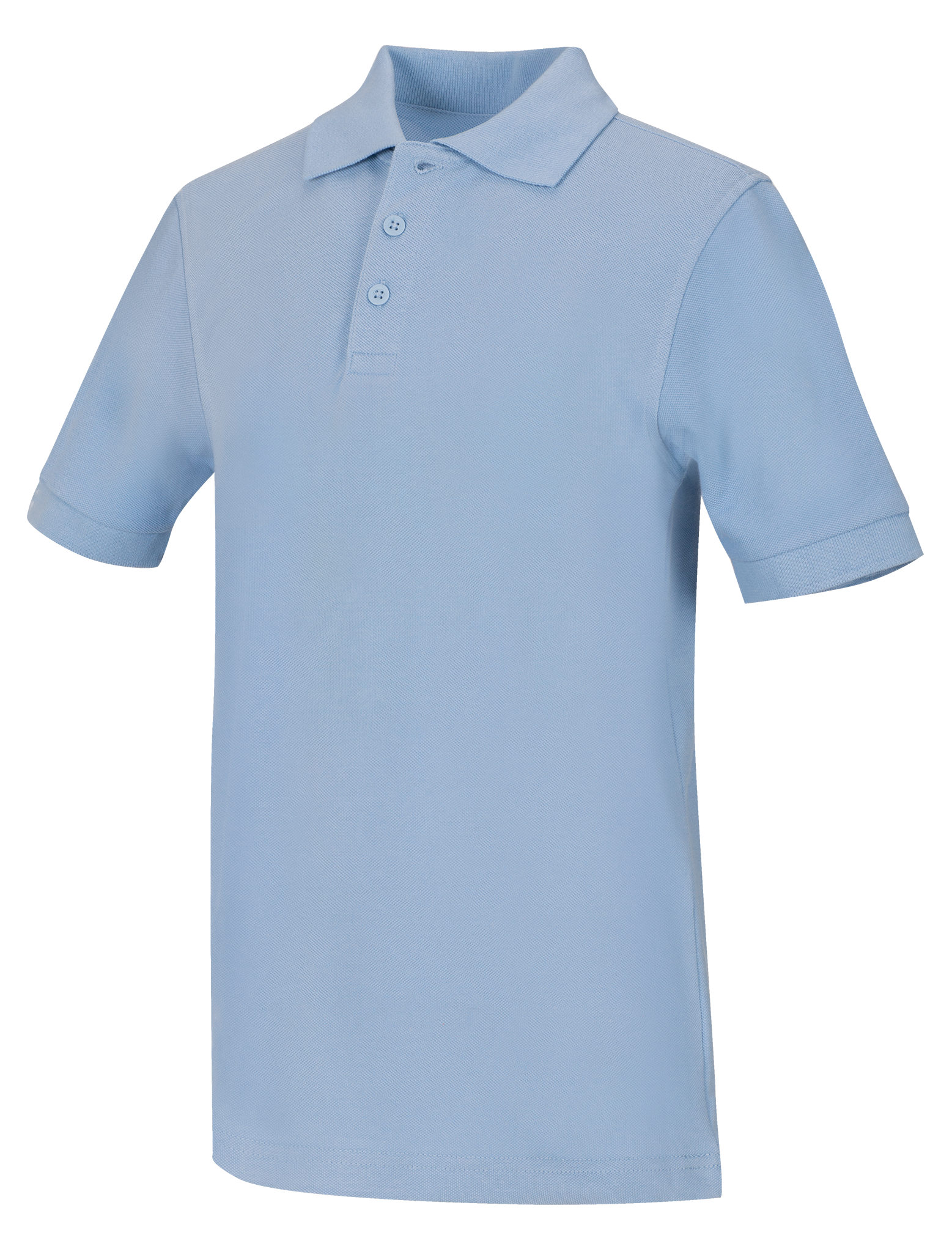 Youth unisex combed cotton, ringspun pique knit polo, matching collar and banded sleeve, three-button placket, dyed-to-match buttons, reinforced shoulder seams and double-needle hem. Colorfast, easy care 60% Cotton/40% Polyester.