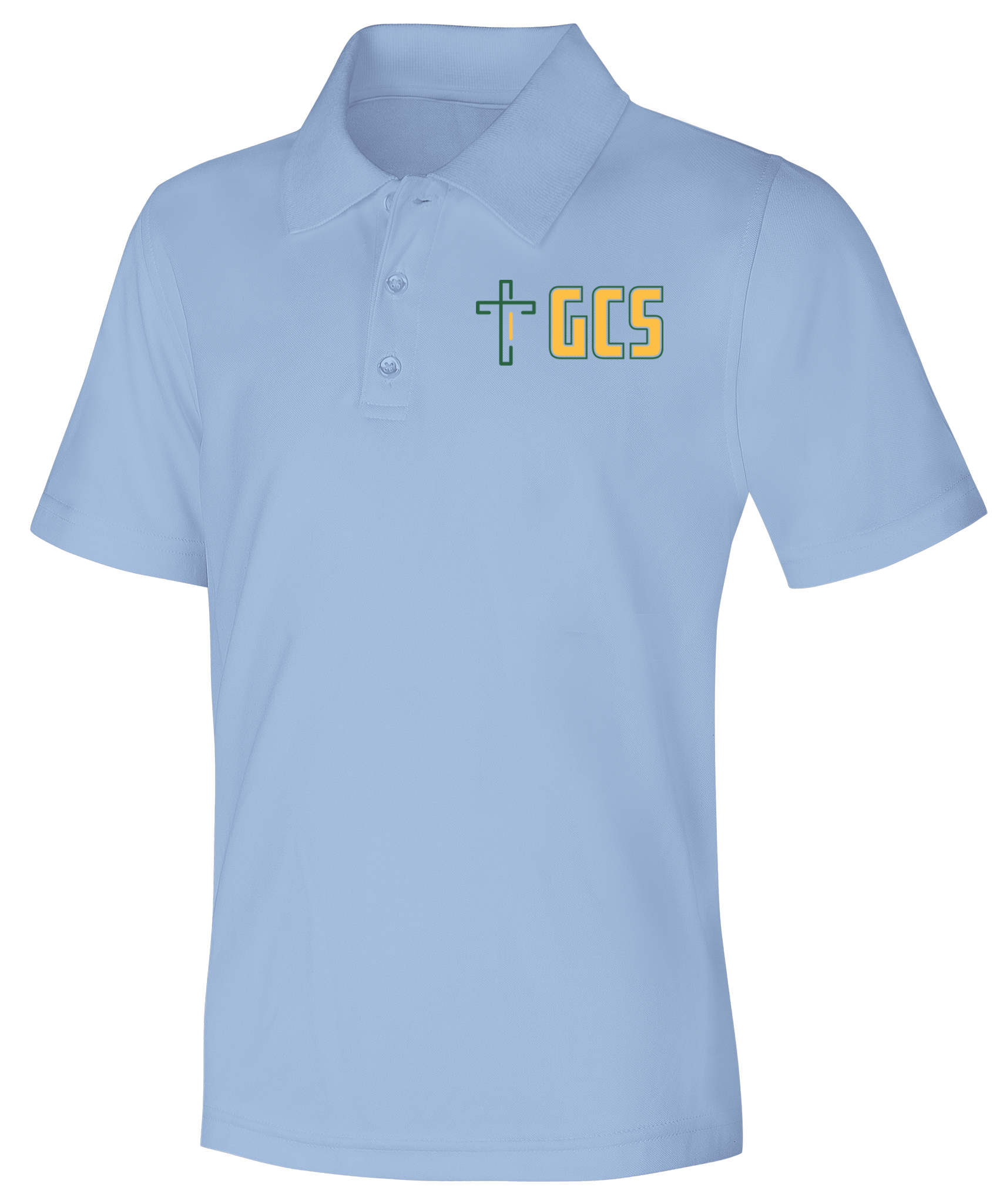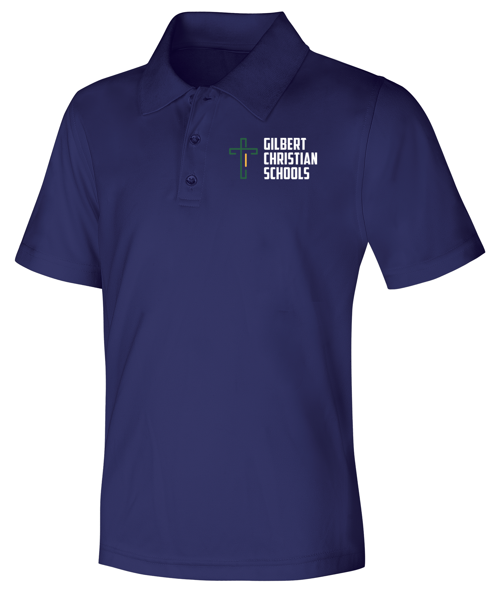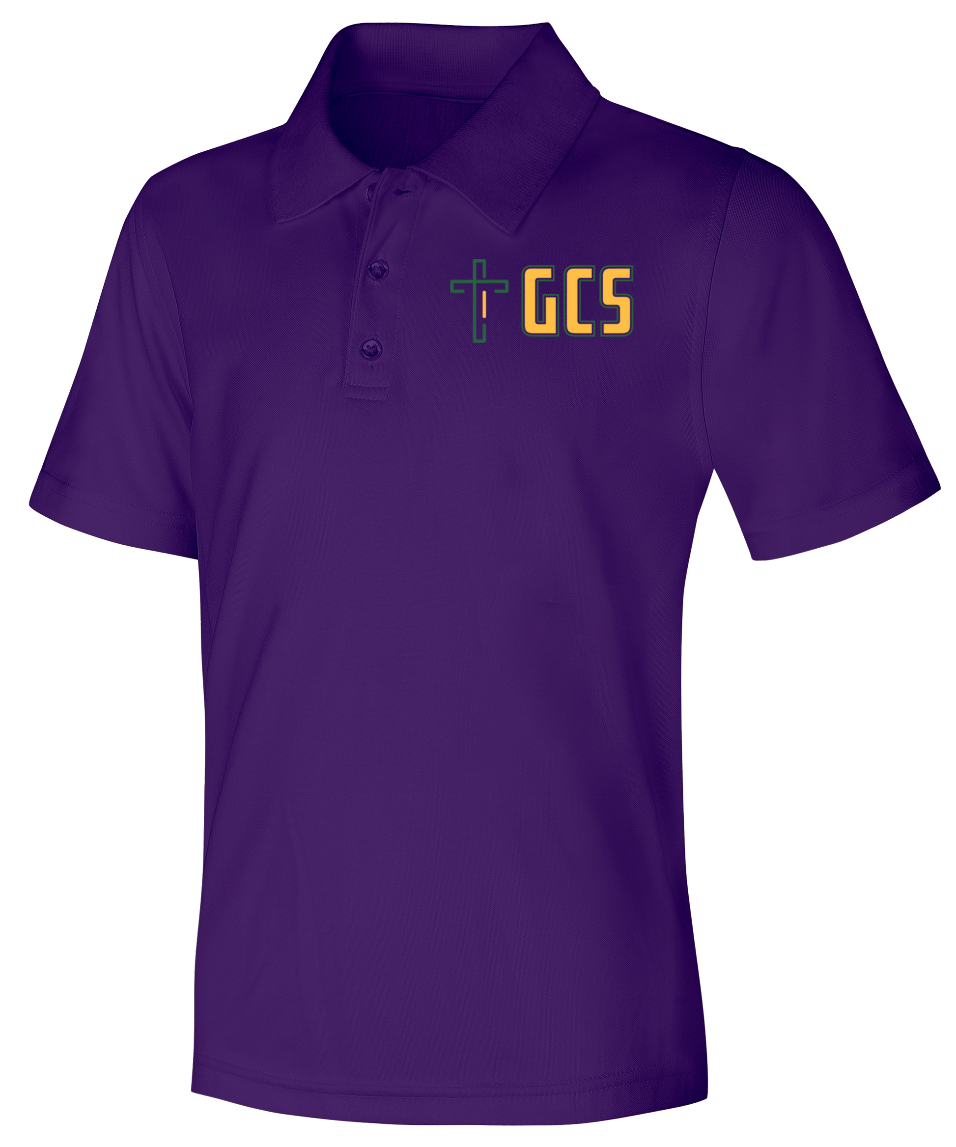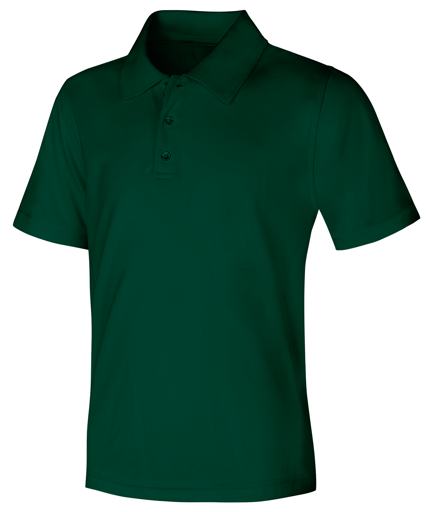 Adult unisex moisture-wicking, stain-resistant, snag-resistant polo, matching ribbed collar, hemmed sleeves, three-button placket, dyed-to-match buttons and side vents. Easy care 100% Polyester.