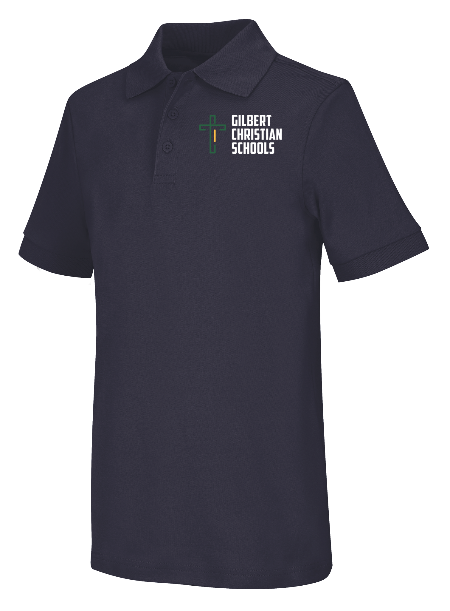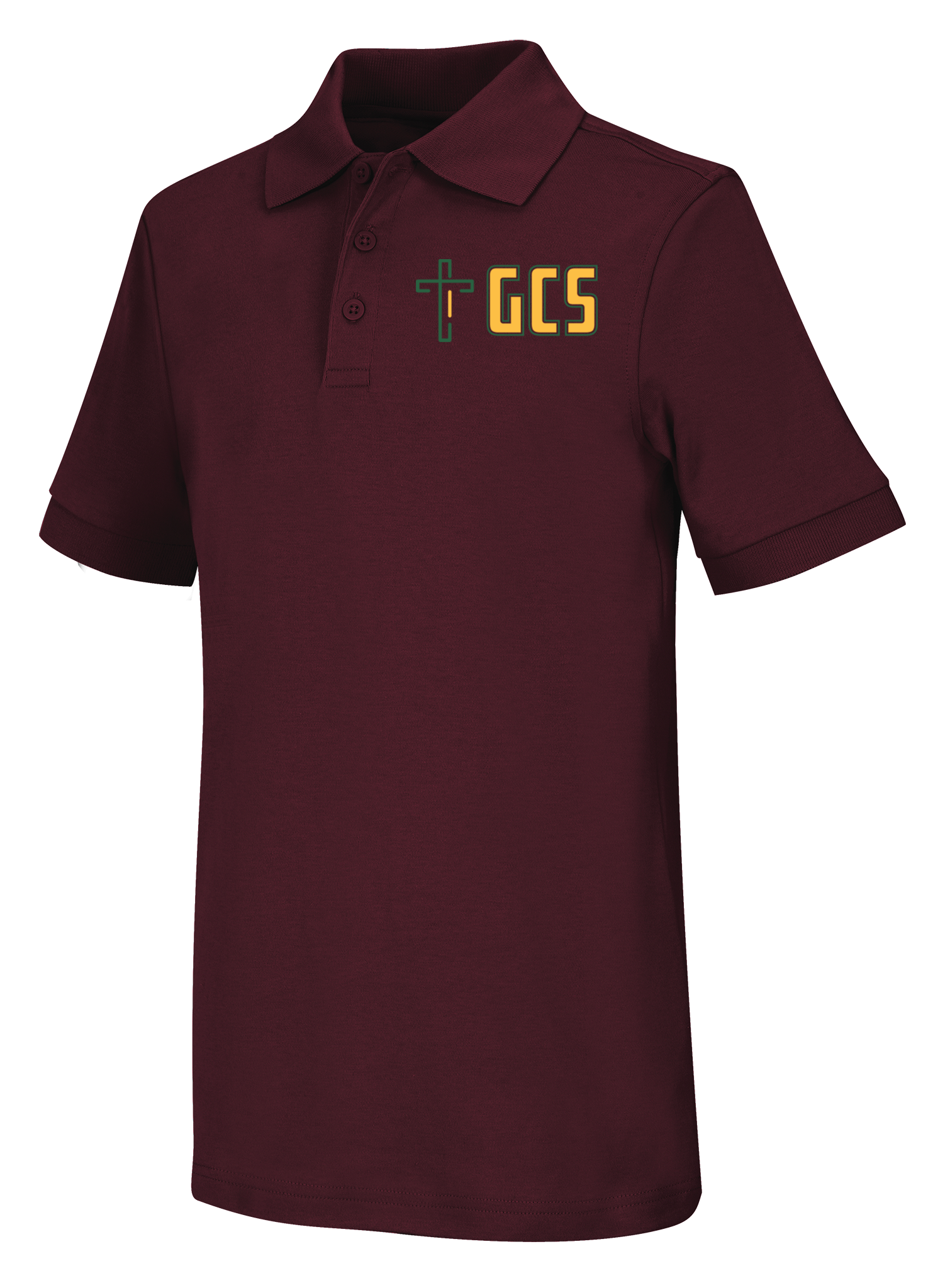 Preschool combed cotton, ringspun interlock knit polo, matching collar and banded sleeve, two-button placket, dyed-to-match buttons, reinforced shoulder seams and double-needle hem. Colorfast, easy care 60% Cotton/40% Polyester.
