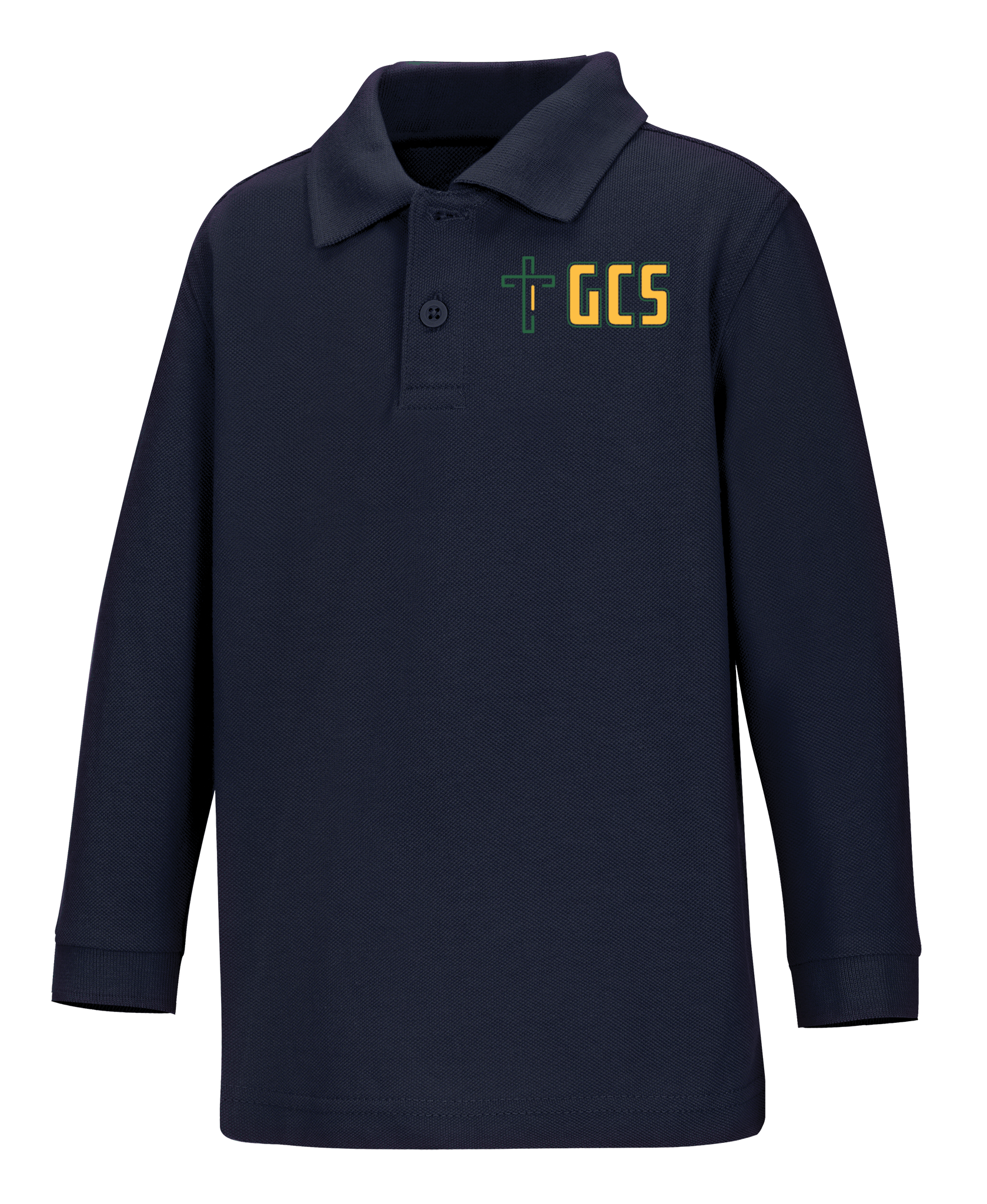 Youth unisex long sleeve unisex polo in a combed cotton, ringspun interlock knit with a 3 button placket and matching ribbed collar and cuffs, reinforced shoulder seams and double-needle hem. Colorfast, easy care 60% Cotton/40% Polyester.