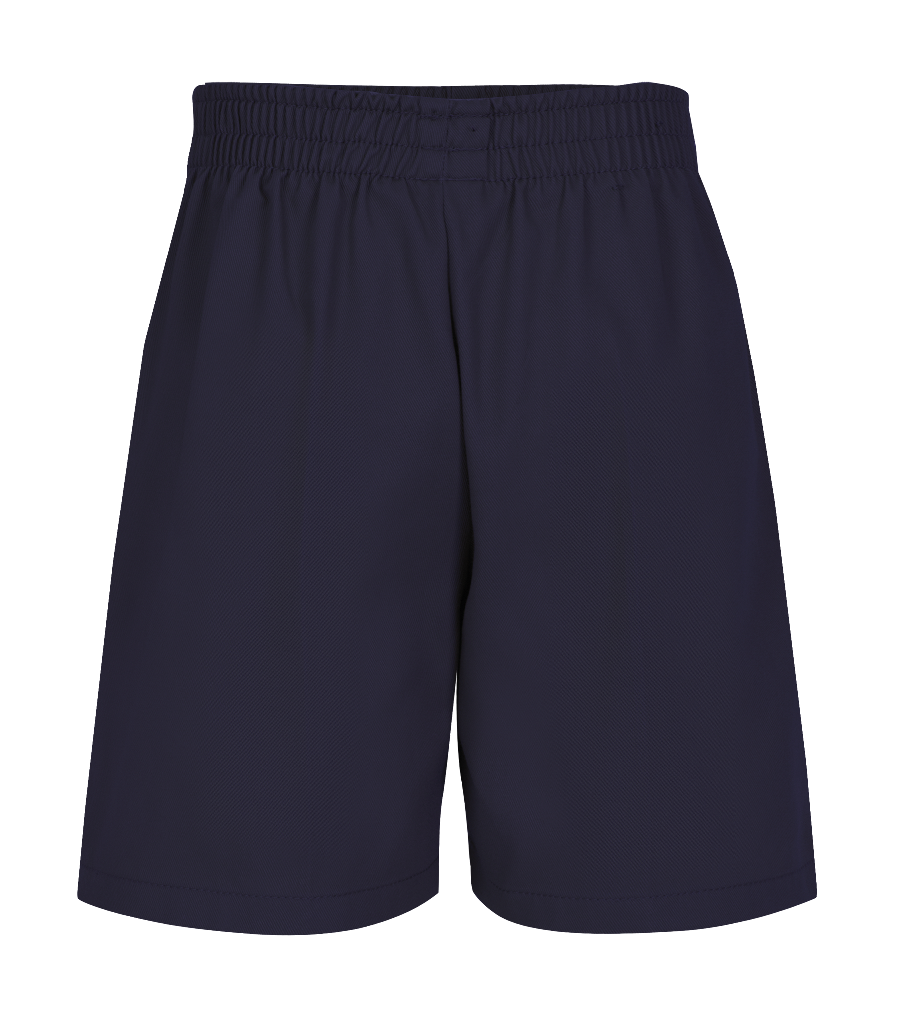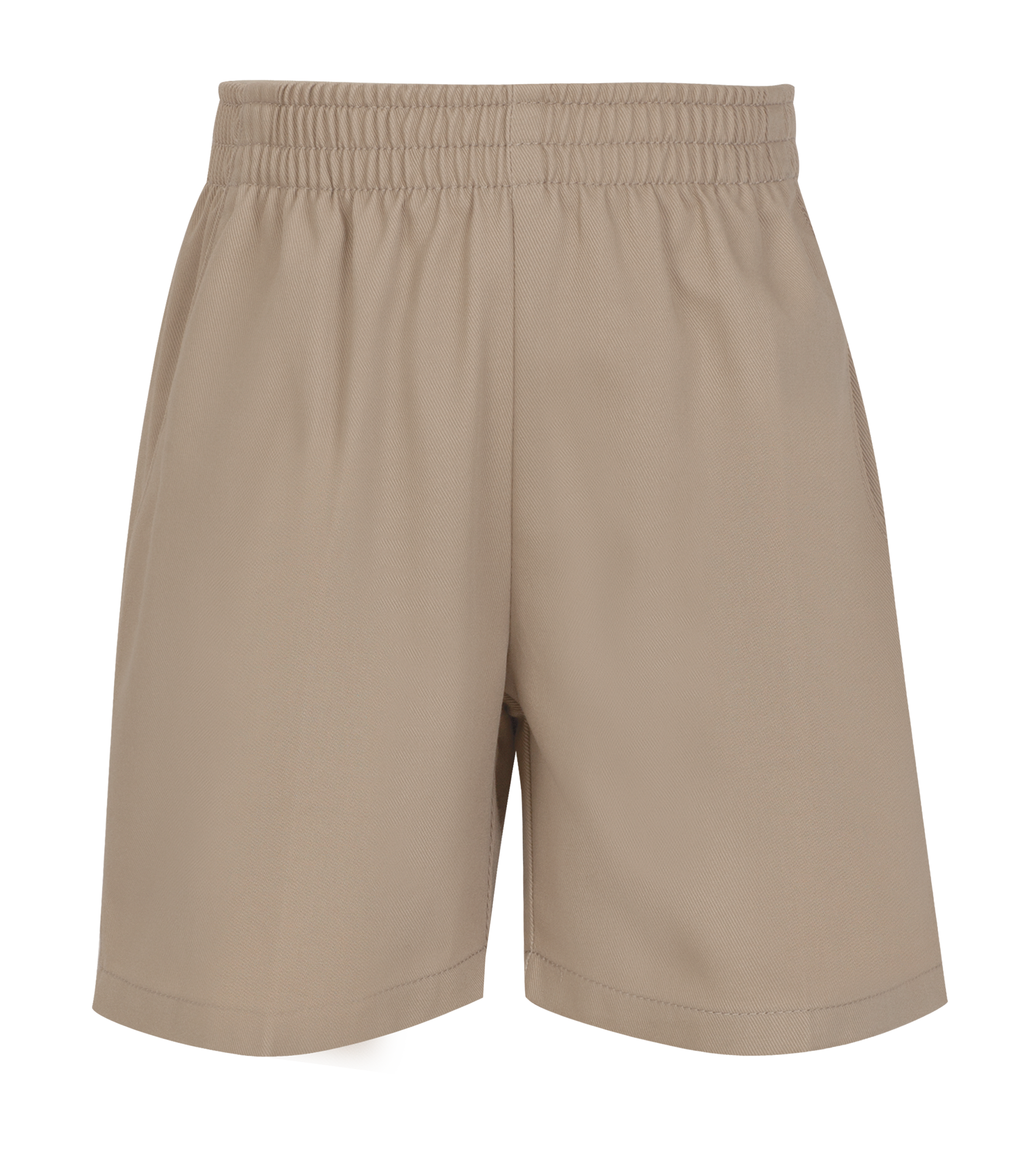 Preschool Pull-on short has triple-stitched all-elastic waist, side pockets, knee-length. Poly/Cotton twill easy care.