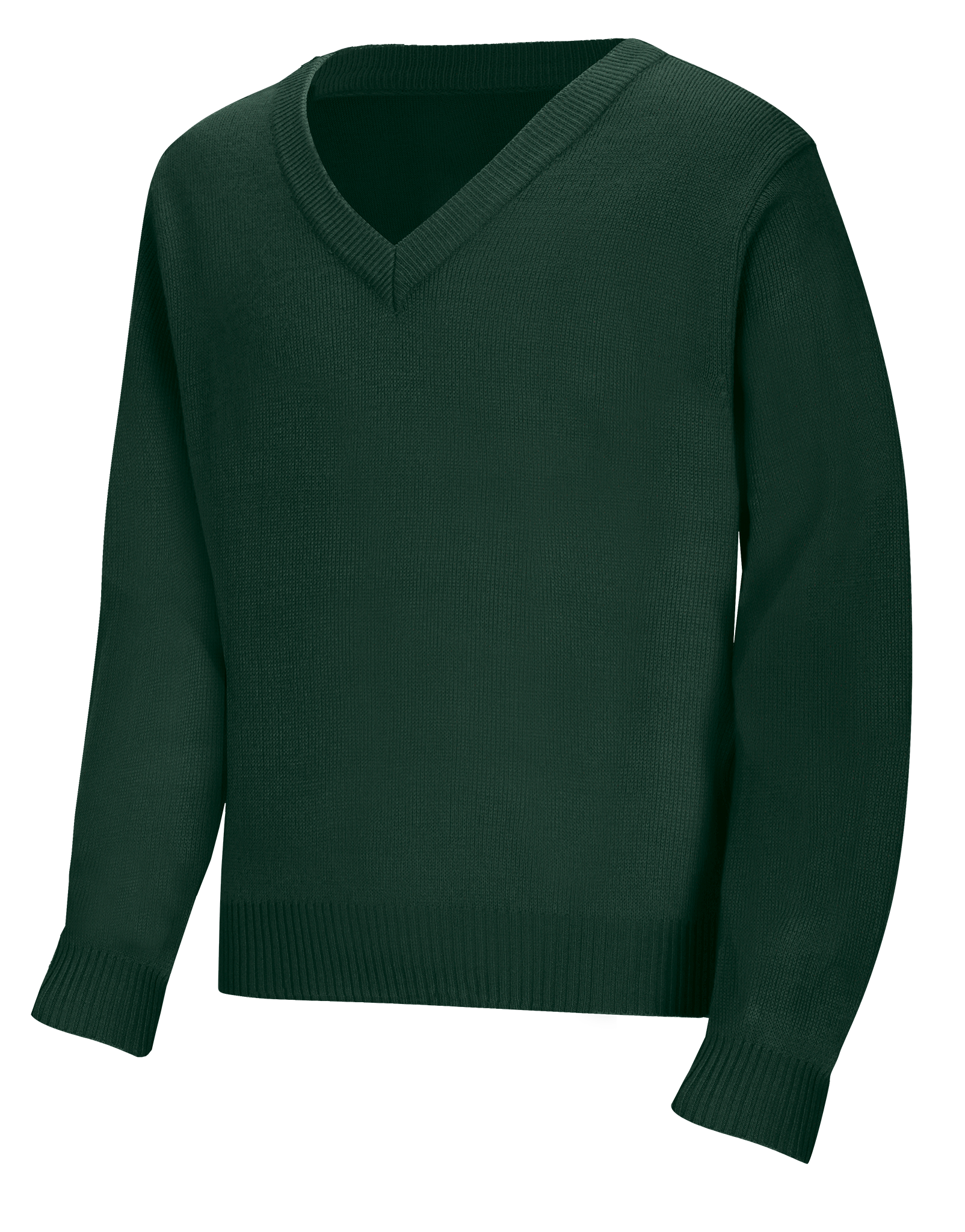 Unisex V-neck pullover sweater with half Milano stitch and turn-back ribbed cuffs, collar and hem. No pill, easy care 100% Acrylic knit.